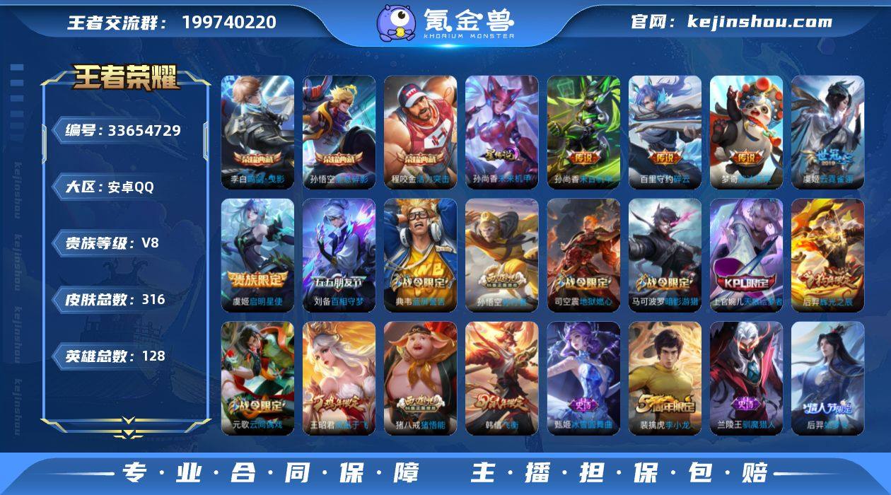 J-DN3741 安卓QQ V8 316皮 3典藏 5传说 105限定 1星元 1天幕 发育路31段 打野23段 全能高手 9269星币 967英雄碎片 379亲密玫瑰 147皮肤碎片 8改名卡 14印记 营地号:219547218 【荣耀典藏】全息碎影,鸣剑·曳影,活力突击, 【星元皮肤】未来机甲, 【热门限定】如梦令男,天狼绘梦者,辉光之辰,飞衡,暗影游猎,凤凰于飞,启明星使,百相守梦刘备, 【限定传说】拒霜思,猫狗日记女,孙行者,猪悟能,蓝屏警告,暗夜猫娘,梁祝,未来纪元,神迹守卫,云霓雀翎,天秀·启明,黄金分割率,超时空战士,碎云,胖达荣荣,千年之狐,末日机甲女,原初探秘者,原初追逐者,黎明之约,暗隐猎兽者,水晶猎龙者,金属风暴,地狱岩魂,特工魅影,曙光守护者,白龙吟,圣诞恋歌,舞动绿茵,逐浪之夏,心灵战警,功夫厨神,心灵骇客,狮舞东方,幽灵船长,乘风破浪,圣诞狂欢,星夜王子,奇遇舞章,节奏热浪,天才门将,偶像歌手,街头霸王,箭羽风息,无畏之灵·狰,摇滚巨星,星空之诺,鬼剑武藏,德古拉伯爵,赤莲之焰,银河之约,猎兽之王,云间偶戏,冰冠公主,狂想玩偶喵,单词大作战,花好人间,蜃楼王,妖精王,炼金王,凯尔特女王,饕餮,烛龙,重明,御狮,御霄,御旌,御銮,朔风刀,混沌棋,疑决卦,醍醐杖,万华元夜,东方不败,拳王,霸王丸,敏锐之力,丁香结,科学大爆...