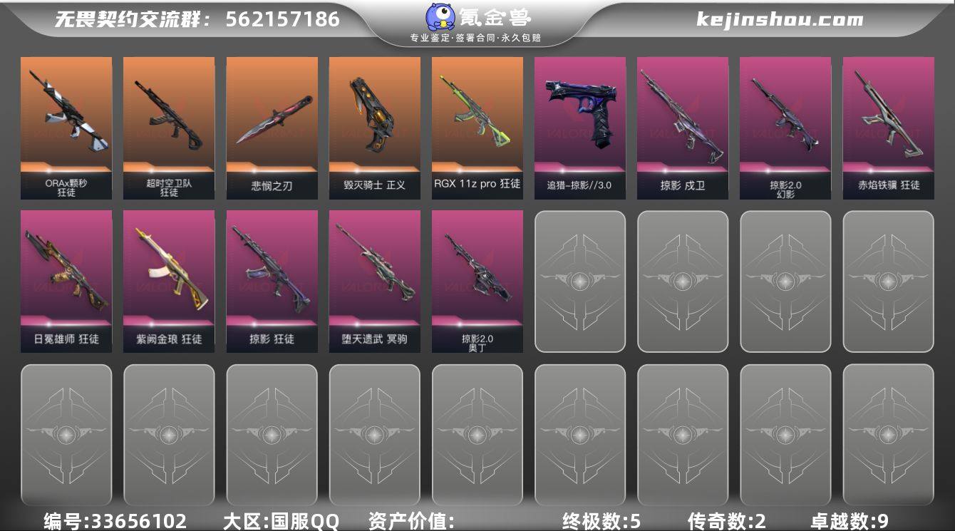 【NF518】【套装】:无畏契约季前邀请赛套装,回火礼包:掠影套装,掠影//3.0套装【英雄】:幻棱,炼狱,暮蝶,壹决,捷风,雷兹,幽影,不死鸟,贤者,猎枭,零,芮娜,奇乐,尚勃勒,霓虹,夜露,K/O,黑梦【近战武器】:近战武器-蒙太奇 战斧,近战武器-影蝶,近战武器-无畏契约季前邀请赛 悲悯之刃【狂徒】:狂徒-RGX 11z Pro,狂徒-ORA x 颗秒,狂徒-超时空卫队,狂徒-掠影,狂徒-日冕雄师,狂徒-紫阙金琅,狂徒-赤焰铁骥【幻影】:幻影-掠影//2.0,幻影-蒙太奇【戍卫】:戍卫-掠影【冥驹】:冥驹-堕天遗武【战神】:战神-蒙太奇【奥丁】:奥丁-掠影//2.0【骇灵】:骇灵-蒙太奇【追猎】:追猎-掠影//3.0【正义】:正义-毁灭骑士【狂怒】:狂怒-蒙太奇【卡面】:Clutch 卡面,无畏契约GO!第一卷:芮娜 卡面,无畏契约GO!第一卷:零 卡面,《双城之战》金克丝 卡面,别冒尖 卡面,代号红色 卡面,新兵报到 卡面,V契约 卡面,无畏契约 卡面【喷漆】:买装还是存钱 喷漆,无畏契约GO!第一卷:贤者 喷漆,暴走萝莉 喷漆,胜利属于无畏契约 喷漆,GLHF 喷漆,无畏契约 喷漆【挂饰】:天外飞客 挂饰,《双城之战》魄罗 挂饰,无畏契约 纪念币 挂饰