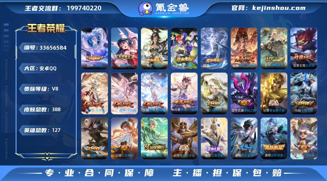 【Hwz990】【特价出售】:安卓Q-V8-可二次-市标孙尚香-5县标-127英雄-388皮肤-1典藏皮肤-1无双-3珍品传说-21传说-113史诗-背包一颗荣耀水晶(真我赫兹、幻阙歌、沧流箭、器灵落星盏) 【英雄全皮】:孙权全皮,苍全皮,敖隐全皮,蒙恬全皮,金蝉全皮,赵怀真全皮,空空儿全皮 【荣耀典藏】:貂蝉幻阙歌 【无双皮肤】:瑶真我赫兹 【珍品传说】:伽罗沧流箭,嫦娥器灵落星盏,孙策时之奇旅 【传说皮肤】:貂蝉神骥聚万邦,后羿神树通天,女娲愿照千秋盛,澜愿照九州拓,虞姬愿照岁时盈,云缨幻光神枪,嬴政玄雷天君,桑启鸣野蒿,孙尚香乘龙问璇玑,东皇太一灼幽烈阳,马超无双飞将,李元芳飞鸢探春,铠绛天战甲,镜炽阳神光,虞姬启明星使,曜云鹰飞将,虞姬云霓雀翎,达摩黄金狮子座,百里玄策白虎志,后羿黄金射手座,宫本武藏地狱之眼 【限定皮肤】:蒙犽顽岩魄,蔡文姬夏日便利店,大乔绒语心约,虞姬夏日便利店,姜子牙天穹之誓,杨戬破阵退雄兵,狄仁杰阴阳师,赵云皇家上将,墨子神迹守卫,妲己时之彼端,孙尚香蔷薇恋人,孙膑天狼运算者,扁鹊奇幻香踪,芈月白晶晶,吕布御风骁将,元歌无心,甄姬女儿国国王,马可波罗暗影游猎,马可波罗山海玄木吟,狄仁杰魔术师,达...