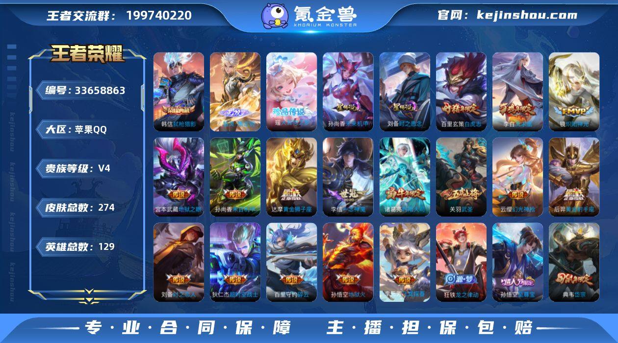 ·金标八戒·器灵螭龙剑·弑枪猎影·大耳狗之梦·珍奇宝灵宝·武圣·白虎志·刘备时之思念·时雨天司·凤求凰·愿照九州拓·炽阳神光·至尊宝·大圣娶亲·神威·飞衡·无二次包过】w25445-苹果Q-129英雄-274皮肤-11王者印记-176铭文-贵族积分9w【贵族4】【1典藏·1无双·1珍品·2星传说·19传说·7按键】【因赛季更新游戏段付以上号为准!】 【英雄全皮】:苍全皮,影全皮 【荣耀典藏】:韩信弑枪猎影 【无双皮肤】:曜器灵螭龙剑 【珍品传说】:瑶大耳狗之梦 【星元皮肤】:刘备时之思念,孙尚香未来机甲 【传说皮肤】:澜愿照九州拓,虞姬愿照岁时盈,云缨幻光神枪,百里守约碎云,李元芳飞鸢探春,诸葛亮时雨天司,镜炽阳神光,虞姬启明星使,关羽武圣,李信一念神魔,刘备时之恋人,达摩黄金狮子座,百里玄策白虎志,后羿黄金射手座,李白凤求凰,孙尚香末日机甲,宫本武藏地狱之眼,孙悟空地狱火,狄仁杰超时空战士 【限定皮肤】:白起狰,狄仁杰阴阳师,赵云皇家上将,赵云引擎之心,嬴政白昼王子,鲁班七号狮舞东方,高渐离玩趣恶龙,阿轲迷踪丽影,芈月重明,吕布猎兽之王,周瑜赤莲之焰,元歌云间偶戏,夏侯惇朔风刀,曹操烛龙,典韦穷奇,典韦蓝屏警告,典韦岱宗,马可波罗暗影游猎,马可波...