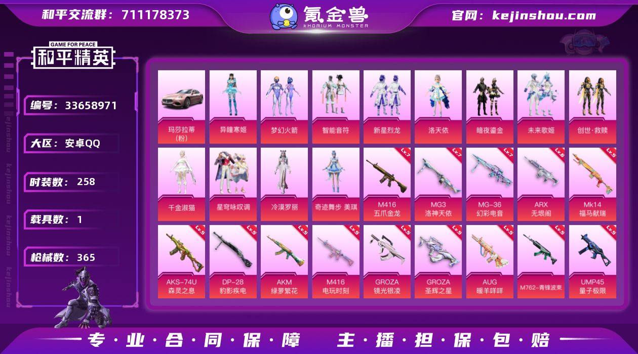 【LHPX1392】可二次 【特价出售/店主推荐】 安卓 手Q-12粉装-22特效枪-1载具-10粉色飞行器-12.2w热力值-18王牌印记-258套装-365枪皮【热门品类】:粉装-梦幻火箭,套装-浪漫天命,套装-小丑鱼,套装-金羽特工,套装-龟仙人,套装-暗影哥特,套装-粉红小猪,角色-Mark.06【粉色套装】:粉装-梦幻火箭,粉装-智能音符,粉装-新星烈龙,角色-洛天依,粉装-暗夜鎏金,粉装-未来歌姬,套装-创世·救赎,角色-千金淑猫,粉装-星穹咏叹调,角色-冷漠罗丽,角色-奇迹舞步 美琪,角色-异瞳寒姬【粉色枪皮等级】:AKM-绿萝繁花(五级),AKM-幻海仙踪(四级),M416-五爪金龙(七级),M416-电玩时刻(五级),GROZA-镜光银凌(五级),GROZA-圣辉之星(五级),AUG-暖羊咩咩(五级),M762-青锋波束(五级),ACE32-萌骑漫游(二级),ARX-无垠阁(六级),UMP45-量子极限(五级),汤姆逊-热量炸弹(五级),AKS-74U-森灵之息(五级),P90-沙丘之主(三级),Kar98K-巳巳如意(五级),Mk14-甜梦熊击(五级),Mk14-福马献瑞(五级),DP-28-豹影疾电(五级),MG3-洛神天依(七级),MG-36-幻彩电音(七级)【粉色载具】:玛莎拉蒂Ghibli(粉)【粉色飞行器】:炫彩糖果飞行器,祥瑞起舞飞行器,黄族统领飞行器,镜域双华-灵镜...