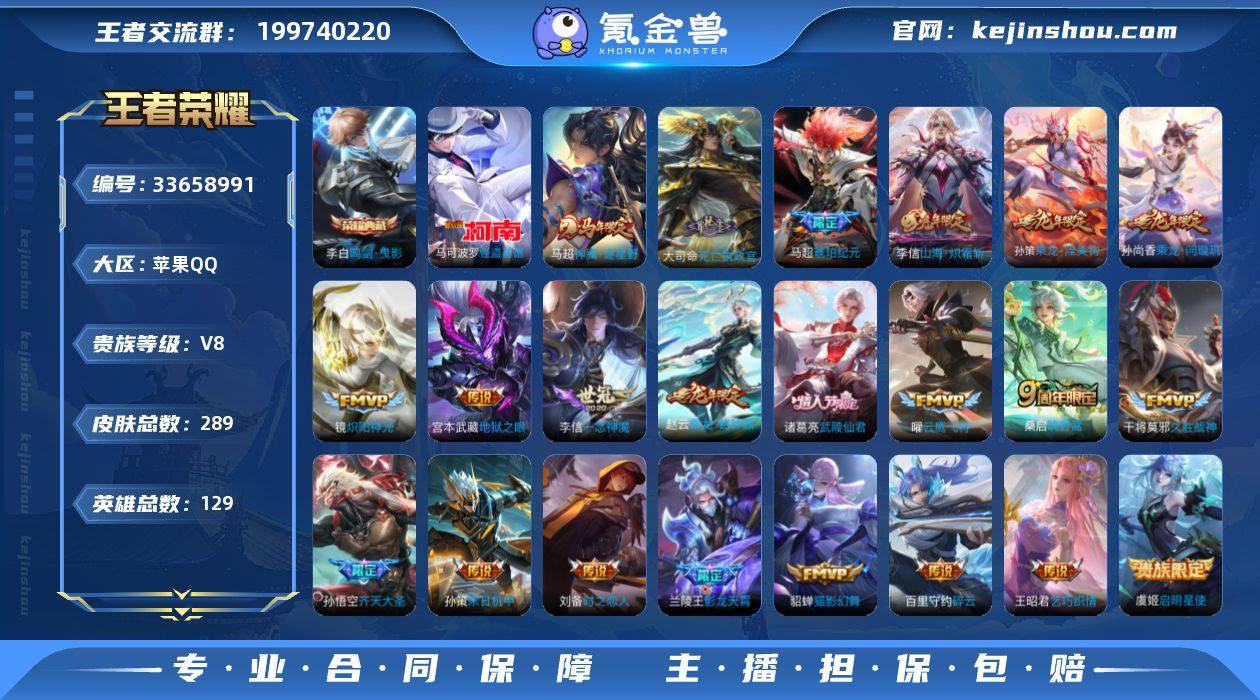 可换绑【高质量精品号·金标兰陵王·李白典藏·马可珍品·马超马限·死亡执政官·龙年全套·马超琥珀纪元·影龙天霄·炽霜斩·齐天大圣·武陵仙君·玄木吟·傲雪梅枪·神威】4750星币 10按键,1星传说,13王者印记,五级铭文200,无二次,苹果Q-V8-289皮肤-1典藏皮肤-1珍品传说-22传说-77史诗【英雄全皮】:孙权全皮,敖隐全皮,影全皮,海诺全皮【荣耀典藏】:李白鸣剑曳影【珍品传说】:马可波罗怪盗基德【星元皮肤】:刘备时之思念【传说皮肤】:马超神骥逐星野,大司命死亡执政官,桑启鸣野蒿,孙尚香乘龙问璇玑,孙策乘龙淬吴钩,赵云乘龙铭钟鼎,马超琥珀纪元,兰陵王影龙天霄,孙悟空齐天大圣,李信山海炽霜斩,百里守约碎云,孙策末日机甲,王昭君乞巧织情,镜炽阳神光,虞姬启明星使,曜云鹰飞将,李信一念神魔,刘备时之恋人,貂蝉猫影幻舞,干将莫邪久胜战神,诸葛亮武陵仙君,宫本武藏地狱之眼【限定皮肤】:姜子牙天穹之誓,杨戬破阵退雄兵,狄仁杰阴阳师,赵云皇家上将,庄周高山流水,高渐离死亡摇滚,高渐离玩趣恶龙,钟无艳超时空战士,白起夜都怪侠,芈月幻夜卜梦,元歌无心,甄姬落雪兰心,马可波罗山海玄木吟,狄仁杰魔术师,达摩沙漠行僧,项羽海滩派对,韩信傲雪梅枪...