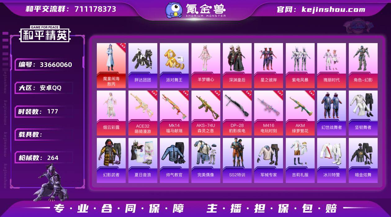 【敖丙1红装7粉装6特效枪 可秒换绑不用等】 安卓Q区-83547热力值-177套装-264枪皮 【1红装】 魔童闹海-敖丙(2级)【2稀有】 派对舞王 派对舞王(金靴子)【7粉装】 星之彼岸 人物-小舞·恋语 紫电风暴 瑰丽时代 深渊皇后 角色-烟云彩露 角色-羊梦糖心【6特效枪】 AKM-绿萝繁花(5级) Mk14-福马献瑞(5级) AKS-74U-森灵之息(5级) ACE32-萌骑漫游(5级) M416-电玩时刻(5级) DP-28-豹影疾电(5级)【46热门】 M416-蓝色火焰 GROZA-异彩先驱 GROZA-彩虹符号 长空猛禽 异彩先驱 甜蜜熊情侣 沙漠雄狮 牛气冲天 霓虹街区 霓虹极客 妙红点点 懵萌河马 风暴特警 朱雀圣者 破蛋小黄鸡 胖达团团 暗影哥特(红眼罩) 团圆交子 瑞龙福将 白色伏地魔 SS27特训 SS26特训 SS25特训 SS24特训 SS23特训 SS22特训 M24-歌者泠鸢 AWM-不夜海上花 AKM-缤纷海域 SCAR-L-玉兔迎春 GROZA-田园牧歌 M762-天降萌叽 M762-彩虹符号 Mk47-乌木金纹 SKS-糯团青竹 Mini14-旋转彩虹 UZI-娇憨猪猪 UMP45-蓝色火焰 DBS-彩虹符号 M249-彩虹符号 MG3-幻世战舞者 AKM-虎虎生威 AKM-霓虹街区【7飞行器】 光之冒险尾迹 粉色滑翔尾迹 红色滑翔尾迹 火焰蝠人飞行服 空岛之星尾迹 炫彩糖果飞行器 炎氏战神飞行翼 营地ID:747086370