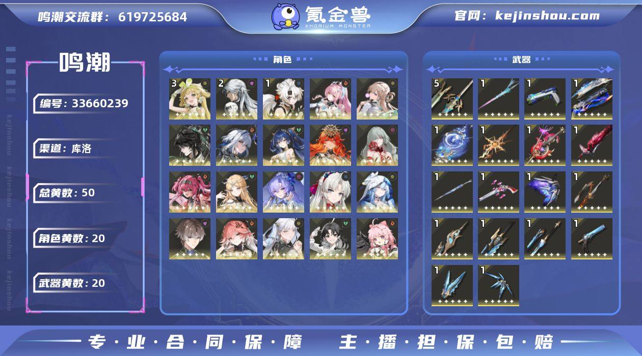 男/女主: 男主 总黄数: 50 联觉等级: 80 拥有五星共鸣者: 鉴心,卡卡罗,安可,维里奈,凌阳,今汐,长离,相里要,守岸人,珂莱塔,坎特蕾拉,卡提希娅,露帕,弗洛洛,奥古斯塔,尤诺,嘉贝莉娜,仇远,琳奈,爱弥斯 3鸣五星共鸣者: 3鸣维里奈 2鸣五星共鸣者: 2鸣卡卡罗 1鸣五星共鸣者: 1鸣凌阳 0鸣五星共鸣者: 0鸣鉴心,0鸣安可,0鸣今汐,0鸣长离,0鸣相里要,0鸣守岸人,0鸣珂莱塔,0鸣坎特蕾拉,0鸣卡提希娅,0鸣露帕,0鸣弗洛洛,0鸣奥古斯塔,0鸣尤诺,0鸣嘉贝莉娜,0鸣仇远,0鸣琳奈,0鸣爱弥斯 拥有五星武器: 浩境粼光,千古洑流,停驻之烟,擎渊怒涛,漪澜浮录,时和岁稔,赫奕流明,星序协响,死与舞,血誓盟约,不屈命定之冠,焰痕,幽冥的忘忧章,驭冕铸雷之权,万物持存的注释,光影双生,相位涟漪,永远的启明星 5鸣五星武器: 5鸣血誓盟约 1鸣五星武器: 1鸣浩境粼光,1鸣千古洑流,1鸣停驻之烟,1鸣擎渊怒涛,1鸣漪澜浮录,1鸣时和岁稔,1鸣赫奕流明,1鸣星序协响,1鸣死与舞,1鸣不屈命定之冠,1鸣焰痕,1鸣幽冥的忘忧章,1鸣驭冕铸雷之权,1鸣万物持存的注释,1鸣光影双生,1鸣相位涟漪,1鸣永远的启明星 亮点: 【MC356】80级/50黄/男主/20个五星角色/20个五星武器未绑定,爱弥斯,卡提希娅,露帕,弗洛洛,奥古斯塔,尤诺,嘉贝莉娜,仇...