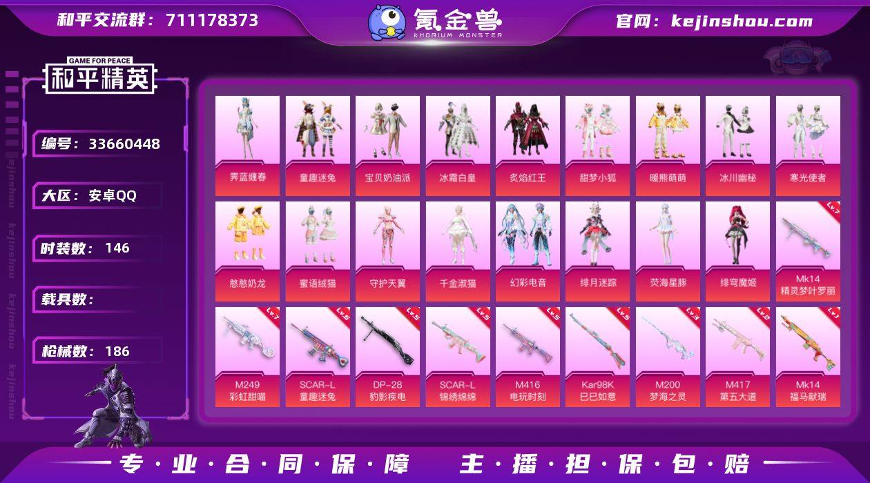 安卓 手Q-17粉装-10特效枪-0载具-6粉色飞行器-65186热力值-8王牌印记-146套装-186枪皮 【热门品类】:粉装-童趣迷兔,套装-龟仙人 【粉色套装】:粉装-宝贝奶油派,粉装-冰霜白皇,粉装-童趣迷兔,粉装-炙焰红王,粉装-甜梦小狐,粉装-暖熊萌萌,粉装-冰川幽秘,粉装-寒光使者,粉装-憨憨奶龙,粉装-蜜语绒猫,角色-守护天翼,角色-千金淑猫,粉装-幻彩电音,角色-绯月迷踪,角色-荧海星豚,角色-绯穹魔姬,角色-霁蓝缠春 【粉色枪皮等级】:SCAR-L-童趣迷兔(六级),SCAR-L-锦绣绵绵(五级),M416-电玩时刻(五级),Kar98K-巳巳如意(五级),Mk14-精灵梦叶罗丽(七级),Mk14-福马献瑞(一级),M417-第五大道(二级),M200-梦海之灵(三级),M249-彩虹甜喵(七级),DP-28-豹影疾电(五级) 【粉色枪皮】:SCAR-L-童趣迷兔,SCAR-L-锦绣绵绵,M416-电玩时刻,Kar98K-巳巳如意,Mk14-精灵梦叶罗丽,Mk14-福马献瑞,M417-第五大道,M200-梦海之灵,M249-彩虹甜喵,DP-28-豹影疾电 【粉色飞行器】:童趣迷兔飞行器,天之羽翼飞行器,庄周梦蝶飞行器,萌物绒绒飞行器,暮色之舞飞行器 【粉色降落伞】:精灵迷巫降落伞,童趣迷兔降落伞,暗夜玫瑰降落伞,碧影闪光降落伞,恐龙拽拽降落伞,第五...