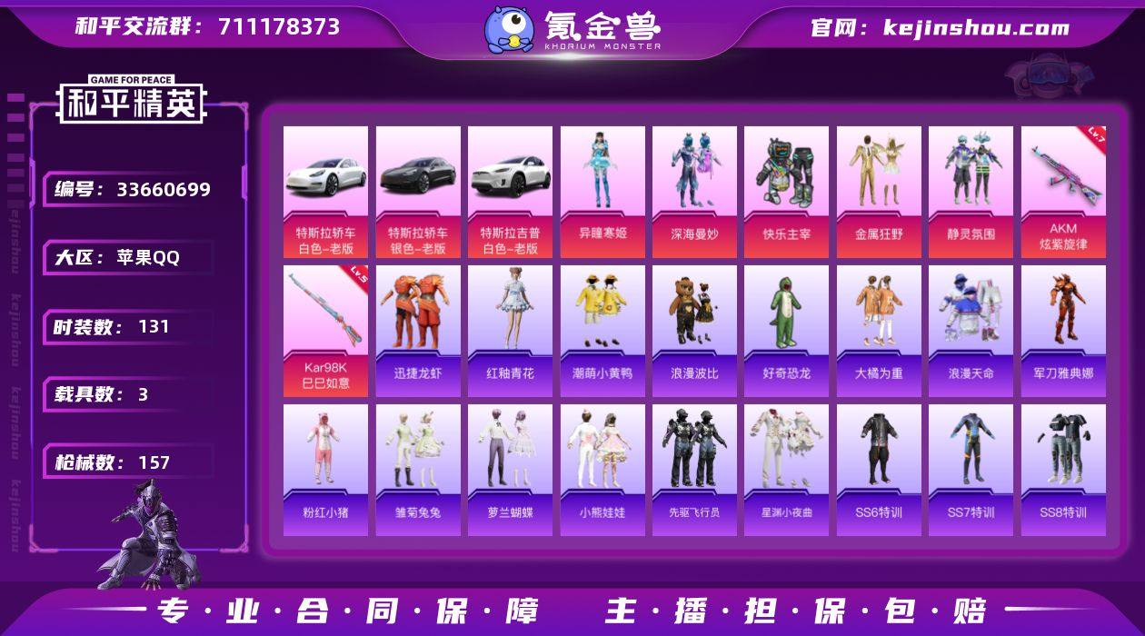 【LHPX1901】【特价出售/店主推荐】苹果 手Q-5粉装-2特效枪-3载具-2粉色飞行器-52296热力值-10王牌印记-131套装-157枪皮【热门品类】:套装-浪漫天命,角色-军刀雅典娜,套装-潮萌小黄鸭,套装-浪漫波比,套装-粉红小猪【粉色套装】:粉装-深海曼妙,粉装-快乐主宰,粉装-金属狂野,粉装-静灵氛围,角色-异瞳寒姬【粉色枪皮等级】:AKM-炫紫旋律(七级),Kar98K-巳巳如意(五级)【粉色载具】:特斯拉Model 3(珍珠白),特斯拉Model 3(冷光银),特斯拉Model X(珍珠白)【粉色枪皮】:AKM-炫紫旋律,Kar98K-巳巳如意【粉色飞行器】:深海曼妙飞行器,炫紫旋律飞行器