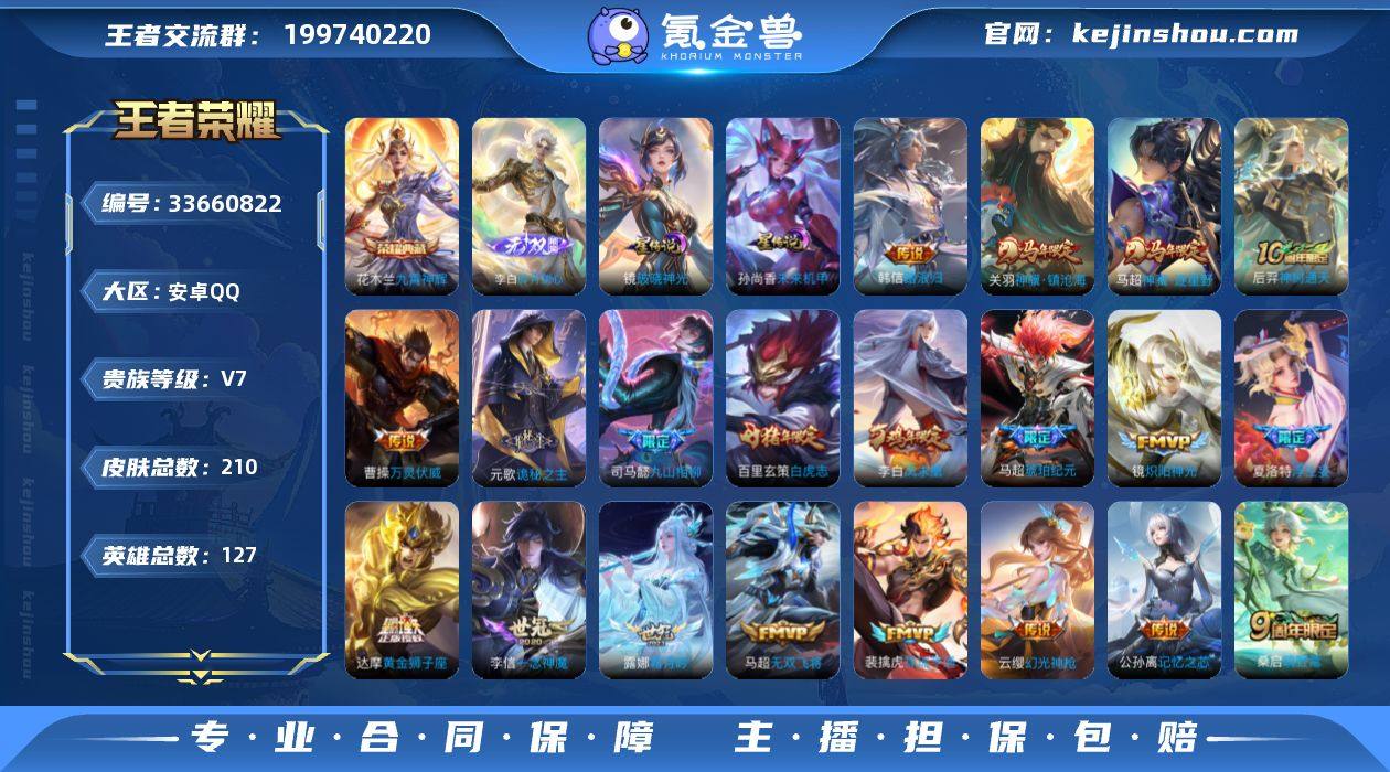 可换绑【高质量精品号·金标1.2万曹操·1.2万马超·1无双·1典藏·关羽马超马限·诡秘之主·九山相柳·马超琥珀纪元·浮生妄·白虎志·凤求凰·涂山容容·织梦人】9按键,2星传说,11王者印记,五级铭文150,可二次,安卓Q-V7-210皮肤-1典藏皮肤-1无双-21传说-65史诗【英雄全皮】:孙权全皮,敖隐全皮,鲁班大师全皮,蒙恬全皮,阿古朵全皮,夏洛特全皮,影全皮【荣耀典藏】:花木兰九霄神辉【无双皮肤】:李白碎月剑心【星元皮肤】:孙尚香未来机甲,镜破晓神光【传说皮肤】:韩信踏浪归,关羽神骥镇沧海,马超神骥逐星野,后羿神树通天,曹操万灵伏威,元歌诡秘之主,司马懿九山相柳,云缨幻光神枪,裴擒虎祥瑞亨通,桑启鸣野蒿,马超琥珀纪元,露娜霜月吟,公孙离记忆之芯,夏洛特浮生妄,马超无双飞将,镜炽阳神光,李信一念神魔,达摩黄金狮子座,百里玄策白虎志,梦奇胖达荣荣,李白凤求凰【限定皮肤】:姜子牙天穹之誓,李白谪仙醉月,狄仁杰阴阳师,赵云皇家上将,元歌无心,曹操天狼征服者,狄仁杰魔术师,项羽海滩派对,杨玉环遇见飞天,百里玄策白虎志,梦奇顽趣,鲁班大师匿光启智者,鲁班大师探海日志,夏洛特浮生妄,艾琳流音漫舞,阿古朵江河有灵,张良古海寻踪,蒙恬荣光圣...