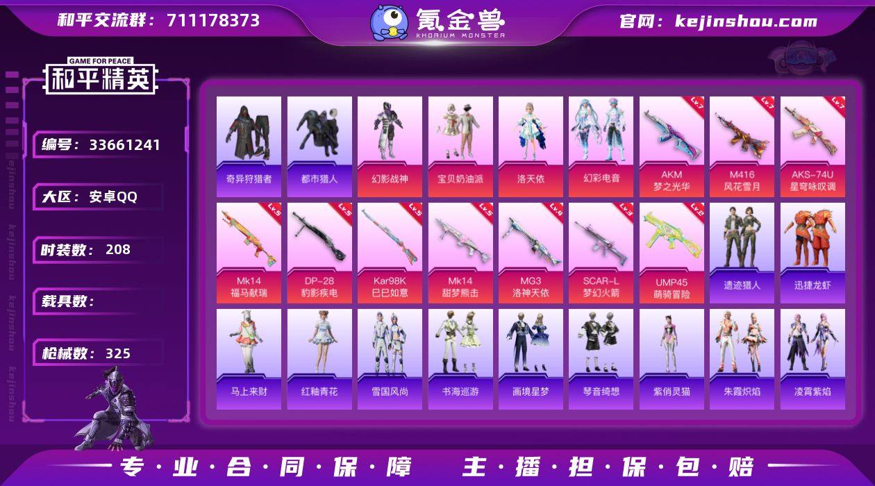 【店主推荐捡漏号/带战神框都市哥特天命洛天依满级ak满级m4满级aks】安卓 手Q-无敌战神框-4粉装-10特效枪-0载具-2粉色飞行器-88568热力值-14王牌印记-208套装-325枪皮【热门品类】:套装-浪漫天命,套装-都市猎人,套装-奇异狩猎者,套装-龟仙人,套装-暗影哥特【粉色套装】:粉装-幻影战神,粉装-宝贝奶油派,角色-洛天依,粉装-幻彩电音【粉色枪皮等级】:AKM-梦之光华(七级),SCAR-L-梦幻火箭(三级),M416-风花雪月(七级),UMP45-萌骑冒险(二级),AKS-74U-星穹咏叹调(七级),Kar98K-巳巳如意(五级),Mk14-甜梦熊击(五级),Mk14-福马献瑞(五级),DP-28-豹影疾电(五级),MG3-洛神天依(四级)【粉色枪皮】:AKM-梦之光华,SCAR-L-梦幻火箭,M416-风花雪月,UMP45-萌骑冒险,AKS-74U-星穹咏叹调,Kar98K-巳巳如意,Mk14-甜梦熊击,Mk14-福马献瑞,DP-28-豹影疾电,MG3-洛神天依