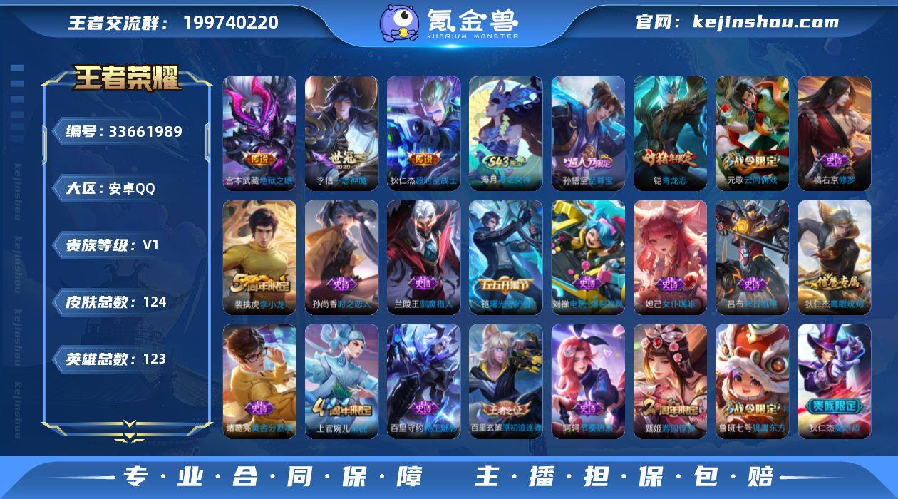 【W7068】【打野小号】营地ID:498832748【爆款臻稀皮肤:至尊宝-一念神魔-青龙志-超时空战士】不可二次-贵6-123英雄-124皮肤-3传说-贵族积分1.3w