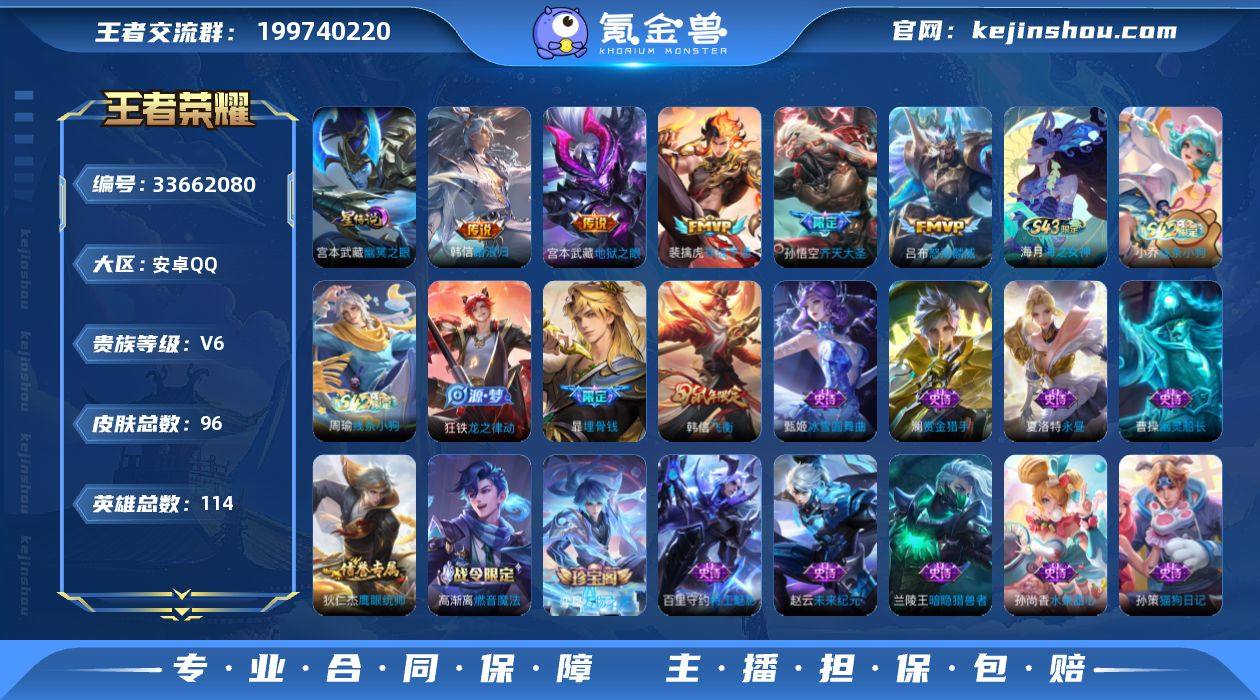 W16184,,可立即换绑无需挂单养号,,铭文满级,,传说5,,,星传说1,,,按键4,,,夺宝96,,安卓Q-V6-至尊星耀I段位-114英雄-96皮肤-5传说-25史诗 【英雄全皮】:孙权全皮 【传说皮肤】:韩信踏浪归,裴擒虎祥瑞亨通,孙悟空齐天大圣,吕布怒海麟威,宫本武藏地狱之眼 【限定皮肤】:暃埋骨钱,狄仁杰阴阳师,赵云皇家上将,狄仁杰魔术师,项羽海滩派对,老夫子醍醐杖,韩信飞衡,孙悟空齐天大圣,李元芳云中旅人,鬼谷子原初探秘者,弈星混沌棋,沈梦溪大漠名商,明世隐疑决卦,裴擒虎擒涛扼浪,盾山御銮,桑启海盐诗旅,张良古海寻踪,高渐离燃音魔法,妲己灵卜魔法,鬼谷子天穹祈灯,沈梦溪龙舞盛年,鲁班七号蔬乡物语,李元芳蔬乡物语,刘邦剑破天穹 【年限皮肤】:韩信飞衡 【赛季限定】:盾山御銮,弈星混沌棋,明世隐疑决卦,老夫子醍醐杖,鬼谷子原初探秘者,沈梦溪大漠名商,李元芳云中旅人,桑启海盐诗旅,裴擒虎擒涛扼浪,张良古海寻踪,鬼谷子天穹祈灯,刘邦剑破天穹 【战令限定】:高渐离燃音魔法,妲己灵卜魔法,鲁班七号蔬乡物语,李元芳蔬乡物语,周瑜线条小狗,小乔线条小狗 【史诗皮肤】:海月海之女神,周瑜线条小狗,小乔线条小狗,狂铁龙之律动,...
