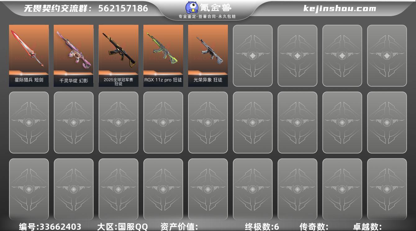 【qyz9774】可二次玩够可回血显卡狂徒穿花蝴蝶千灵化绽幻影 qyz9774 【近战武器】:近战武器-穿花蝴蝶,近战武器-星际猎兵 短剑 【狂徒】:狂徒-2025全球冠军赛,狂徒-RGX 11z Pro,狂徒-光荣异象 【幻影】:幻影-千灵华绽 【鬼魅】:鬼魅-宿怨 【卡面】:纤云弄巧 卡面,无畏契约GO!第一卷:芮娜 卡面,无畏契约GO!第一卷:零 卡面,暗枪 卡面,代号红色 卡面,新兵报到 卡面,V契约 卡面,无畏契约 卡面 【喷漆】:买装还是存钱 喷漆,胜利属于无畏契约 喷漆,GLHF 喷漆,无畏契约 喷漆 【挂饰】:天外飞客 挂饰,无畏契约 纪念币 挂饰