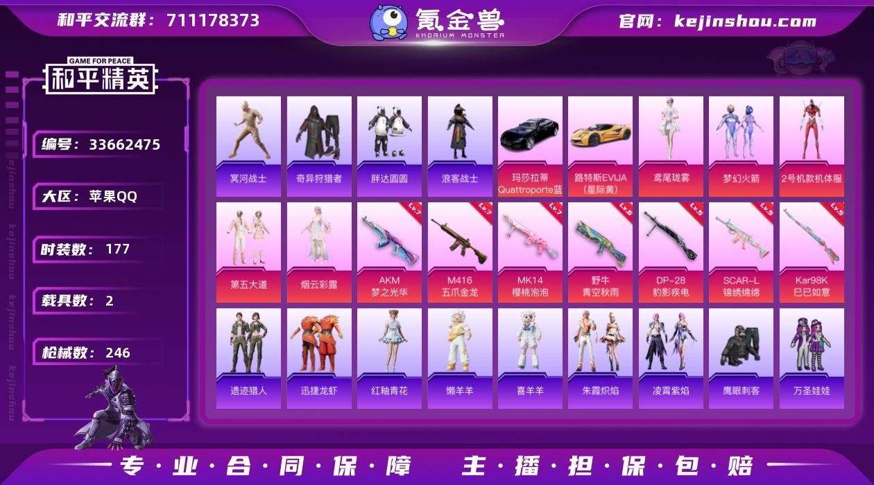 苹果【素材号/15王牌印记/梦幻火箭/2号机款机体服/冥河战士/胖达圆圆/暗影哥特/5粉装-7特效枪-2载具-2粉色飞行器】 手Q--78326热力值-15王牌印记-177套装-246枪皮 【热门品类】:粉装-梦幻火箭,套装-冥河战士,套装-奇异狩猎者,角色-军刀雅典娜,套装-胖达圆圆,套装-浪客战士,套装-龟仙人,套装-暗影哥特 【粉色套装】:粉装-梦幻火箭,角色-2号机款机体服,粉装-第五大道,角色-烟云彩露,角色-鸢尾珑雾 【粉色枪皮等级】:AKM-梦之光华(七级),SCAR-L-锦绣绵绵(五级),M416-五爪金龙(七级),野牛-青空秋雨(六级),Kar98K-巳巳如意(五级),Mk14-樱桃泡泡(七级),DP-28-豹影疾电(五级) 【粉色载具】:路特斯EVIJA(星际黄),玛莎拉蒂Quattroporte(夜幕蓝) 【粉色枪皮】:AKM-梦之光华,SCAR-L-锦绣绵绵,M416-五爪金龙,野牛-青空秋雨,Kar98K-巳巳如意,Mk14-樱桃泡泡,DP-28-豹影疾电 【粉色飞行器】:炫彩糖果飞行器,相思残雪飞行器 【粉色降落伞】:甜心宝贝降落伞,PEL轰鸣竞梦者降落伞,四圣焕新降落伞,潮汐统领降落伞,银刃赛罗降落伞,环太平洋降落伞,彩虹甜喵降落伞,暗夜鎏金降落伞,飒粉甜心降落伞,炫光之旅降落伞,莲影清波降落伞,喜羊羊与灰太狼降落...