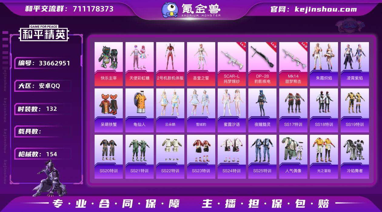 【AZH3663】安卓 手Q【红螳螂 天使彩虹糖 人物-小舞 满级纯梦嫁纱SCAR-L 胖达头盔】5粉装-5特效枪-0载具-2粉色飞行器-45913热力值-11王牌印记-132套装-154枪皮 【热门品类】:套装-龟仙人 【粉色套装】:粉装-快乐主宰,粉装-天使彩虹糖,角色-2号机款机体服,角色-圣堂之誓,人物-小舞·灵珑 【粉色枪皮等级】:SCAR-L-纯梦嫁纱(七级),UMP45-萌骑冒险(四级),Mk14-甜梦熊击(五级),Mk14-福马献瑞(四级),DP-28-豹影疾电(五级) 【粉色枪皮】:SCAR-L-纯梦嫁纱,UMP45-萌骑冒险,Mk14-甜梦熊击,Mk14-福马献瑞,DP-28-豹影疾电 【粉色飞行器】:炫彩糖果飞行器,辉光之愿飞行器 【粉色降落伞】:甜心宝贝降落伞,炙焰牛王降落伞,垂柳戏鸭降落伞,暗夜鎏金降落伞,绯穹魔姬降落伞,炫彩糖果降落伞 【稀有套装】:套装-龟仙人,套装-雪国风尚,套装-炫彩糖果,套装-马上有钱,套装-云朵鹅,套装-雪绒豹,套装-蜜露汐语,角色-夜瞳黯灵,套装-朱霞炽焰,套装-凌霄紫焰,套装-雨过天青,套装-红釉青花 【稀有枪皮】:AUG-冰晶雪宝,AKM-夜灯,AKM-彩虹符号,AKM-环太平洋,AKM-生命誓言,AKM-筑梦精灵,AKM-龙的传人,M16A4-幻世战舞者,M16A4-甜心亚梦,SCAR-L-夜灯,SCAR-L-炫彩...