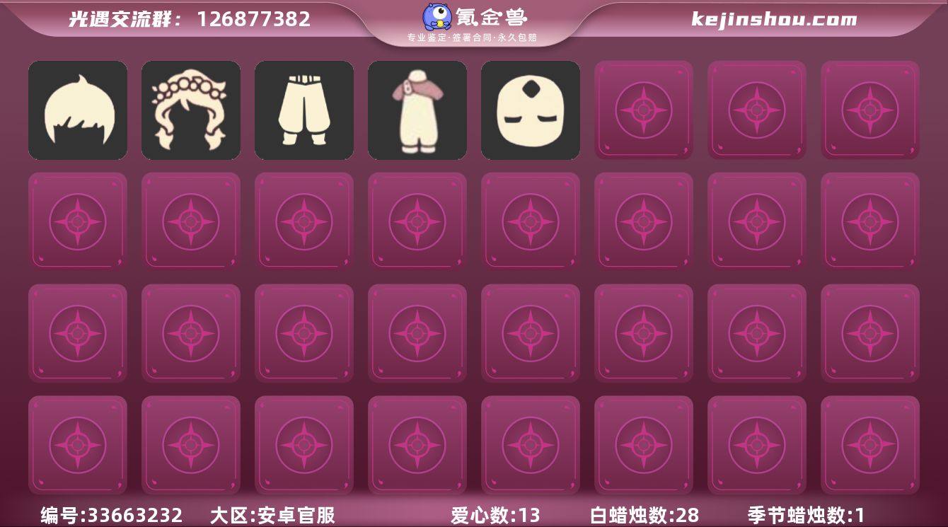 【XT0651】 ✅官服武士裤,背带裤,矮人面具,黑脸,正太,花环,虚荣,二级白斗,雨伞 ✅区服 :安卓邮箱号✅5.19可换绑 ✅最高:1.553最矮:13.553✅目前:2.877 ✅资源:蜡烛:28爱心:13翼数量:63 ✅毕业地图:霞谷 ✅毕业季节:无 ✅礼包:四叶草 ✅热门物品:武士裤,背带裤,矮人面具,黑脸,正太,花环,虚荣,二级白斗,雨伞