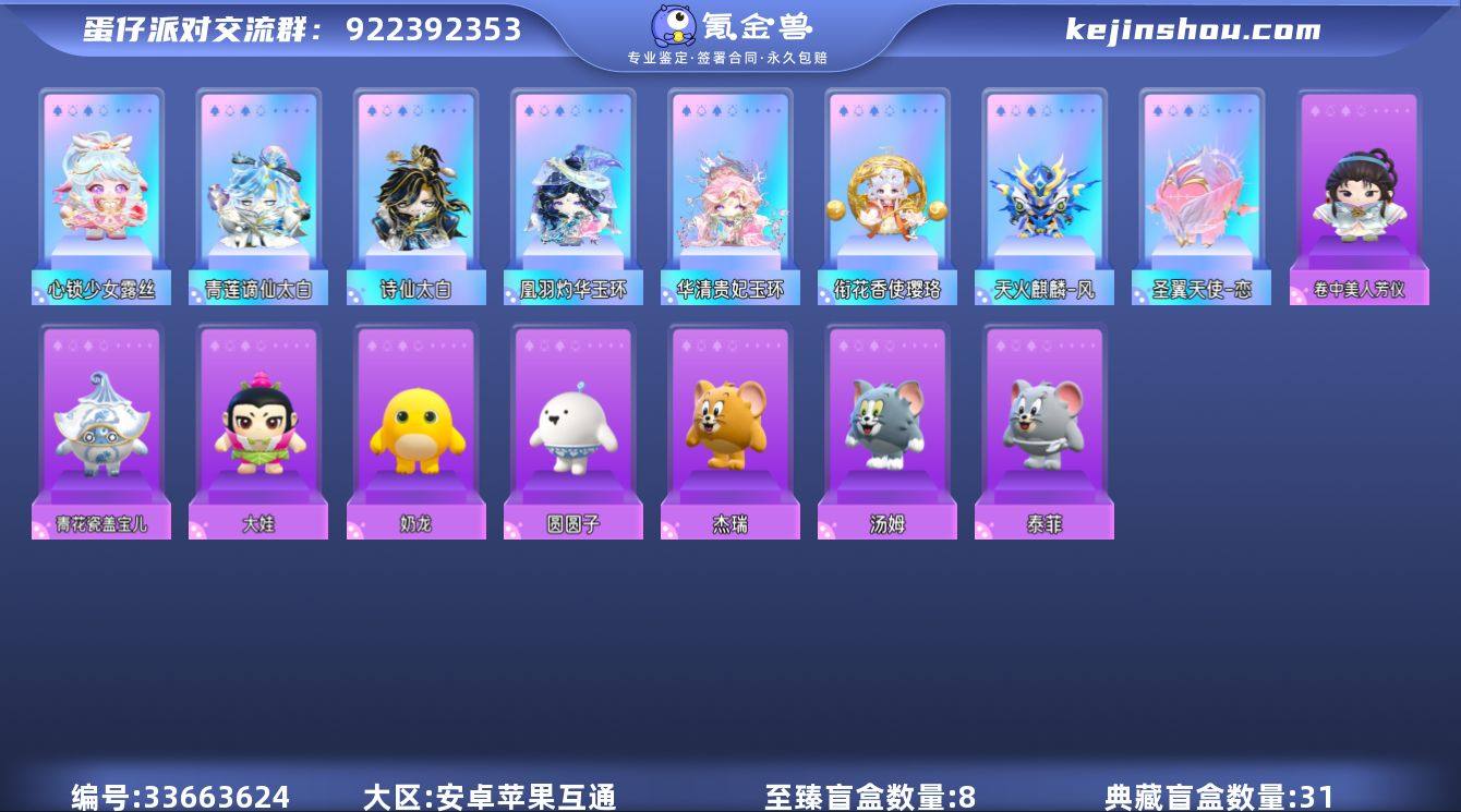 【dan898】网易官服手机号 苹果安卓通用 换绑cd:2026/5/19 至臻皮肤数量:8 典藏皮肤数量:31 热门装扮:诗仙太白 青莲谪仙太白 心锁少女露丝 衔花香使璎珞 天火麒麟-风 圣翼天使-恋 华清贵妃玉环 凰羽灼华玉环 卷中美人芳仪 青花瓷盖宝儿 泰菲 大娃 杰瑞 汤姆 圆圆子 奶龙 载具装扮:音速风暴号 星河弹弹车 瑶光星星马·翼 瑶光星星马·梦 翅膀:海神的赐福