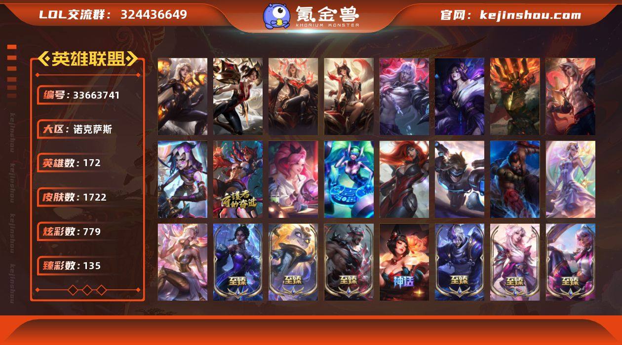 t39757【诺克萨斯】签名版联盟不朽卡莎 殿堂传奇卡莎 联盟不朽阿狸签名版 殿堂传奇阿狸 王佛耶戈_ 灵魂莲华莫甘娜 萨恩乌祖尔莫德凯撒 双城之战2破碎者金克丝 金蛇巨星瑟提 1724皮肤 779炫彩 135臻彩 110神话/354限定/134传说/172英雄 账号等级:722 云顶神话:3 【重要头像】星守阿狸 破碎金克丝头像 爱意绵绵 奥瑞利安萌尔 银河魔装机神安妮 耀星女神拉克丝 冬境仙灵妮蔻 暗星女王拉克丝 萨勒芬妮超级巨星 萨勒芬妮独立音乐人 春晖神女拉克丝 万圣节卡特琳娜 救生圈 小茹 华洛 德丽 基斯 北极星神黛安娜 沐浴震惊 战斗学院悠米 剪纸仙灵艾瑞莉娅炫彩 披萨鸡 魔女莫甘娜 真实伤害赛娜 冠军之箭艾希凯旋盛装 至臻星之守护者辛德拉 至臻魔女婕拉 水晶圣骑塔利亚炫彩头 水晶圣骑蕾欧娜炫彩头 【重要皮肤】签名版联盟不朽卡莎 殿堂传奇卡莎 联盟不朽阿狸签名版 殿堂传奇阿狸 王佛耶戈_ 灵魂莲华莫甘娜 萨恩乌祖尔莫德凯撒 双城之战2破碎者金克丝 金蛇巨星瑟提 小气大亨莫德凯撒至臻 北极星神梅尔至臻 机神玄武盖伦至臻 永恒星灵佐伊至臻 T1塞拉斯至臻 暗裔英雄嘉文四世至臻 莲华温泉厄斐琉斯至臻 灵魂莲华劫至臻 灵魂莲华拉克丝至臻 战斗学院奇亚娜至臻 凯旋将军德莱厄斯至臻 剪纸...