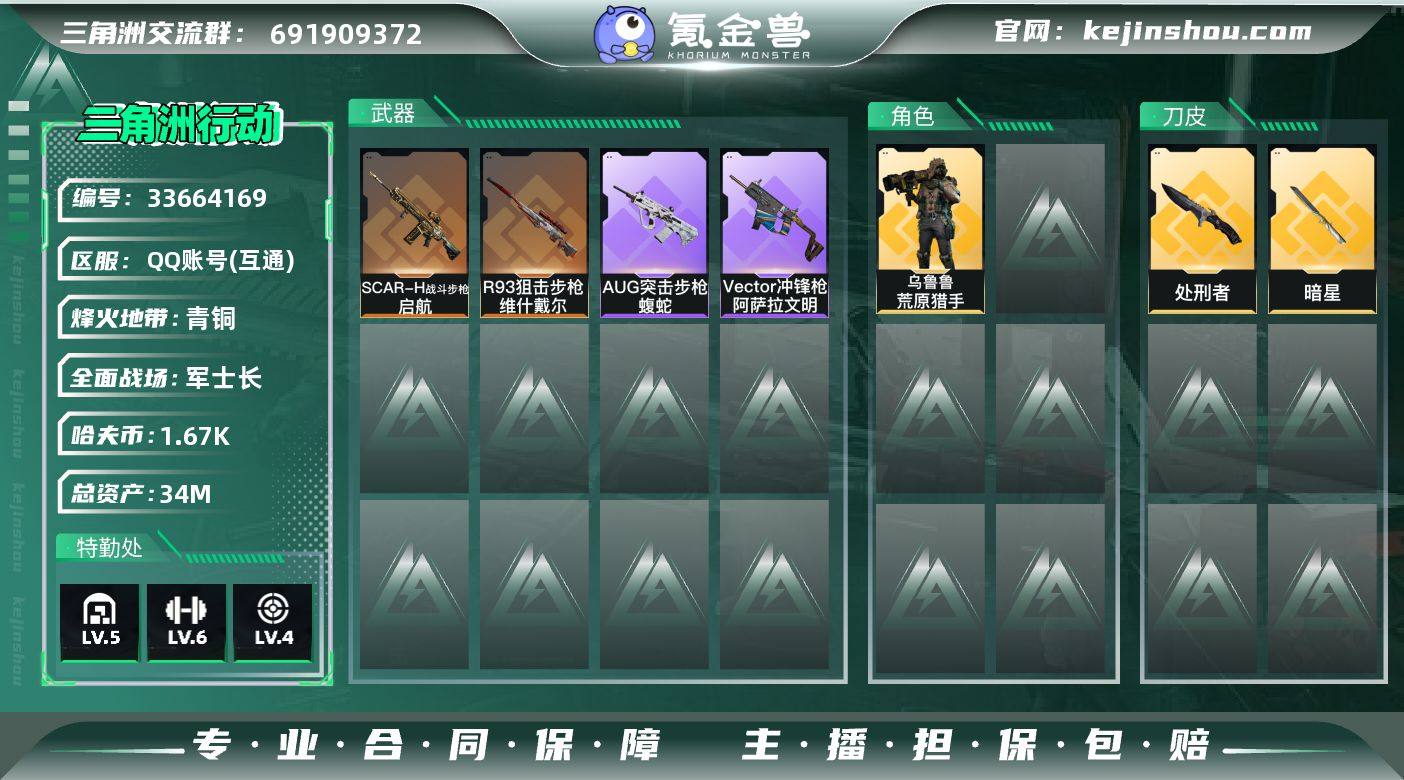 DSJZ1808【资产34.8M 干员皮 荒原猎手 刀皮暗星 处刑者】【总资产(M)】34.75【哈夫币】1,670.66【行动等级】54