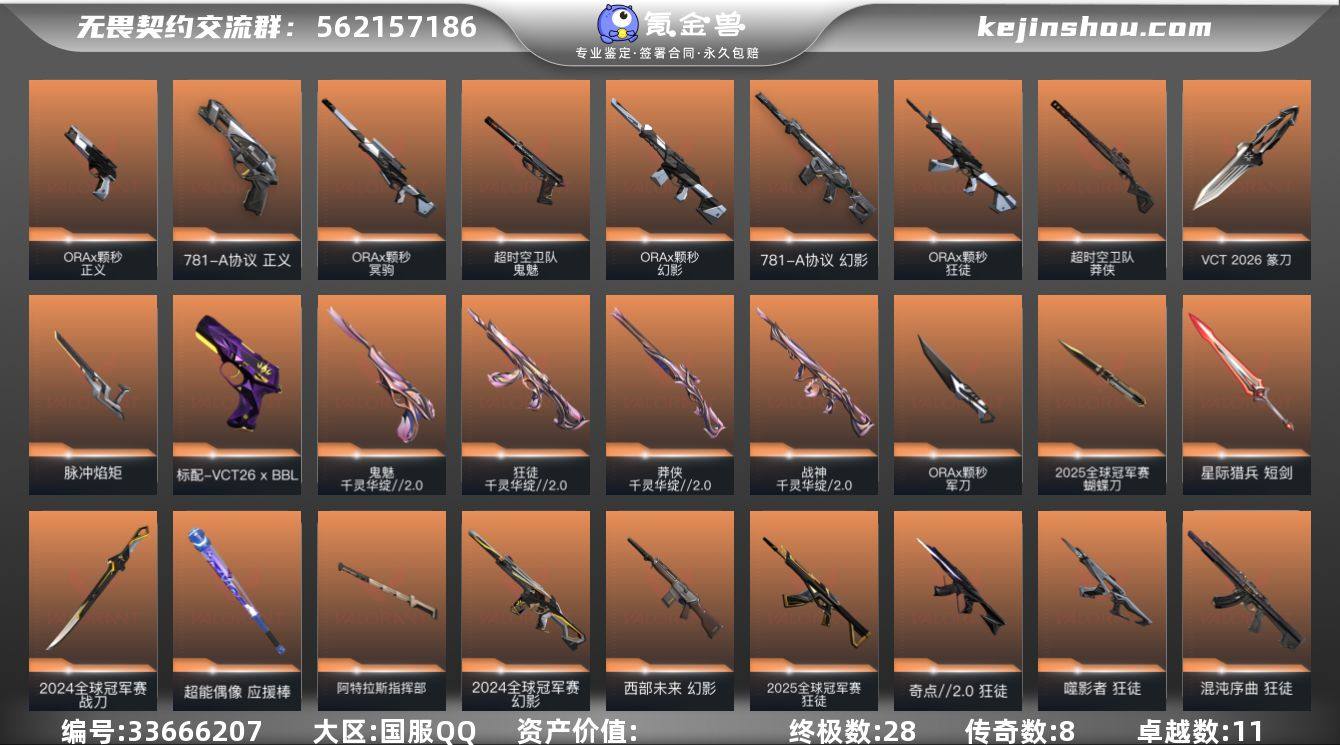 【qyz9996】24 25冠军套 26篆刀 大库存皮肤号 qyz9996 【近战武器】:近战武器-2025全球冠军赛 蝴蝶刀,近战武器-2024全球冠军赛 战刀,近战武器-蒙太奇 战斧,近战武器-碎心裂刃,近战武器-VCT 2026 篆刀,近战武器-脉冲焰矩,近战武器-流风回雪,近战武器-ORA x 颗秒 军刀,近战武器-魔术火花,近战武器-紫金爪刀,近战武器-超能偶像 应援棒,近战武器-阿特拉斯指挥部 甩棍,近战武器-星际猎兵 短剑,近战武器-魔术火花 【狂徒】:狂徒-2025全球冠军赛,狂徒-洪荒怒焰,狂徒-混沌序曲,狂徒-奇点//2.0,狂徒-噬影者,狂徒-ORA x 颗秒,狂徒-千灵华绽//2.0,狂徒-掠影,狂徒-盖亚的复仇,狂徒-日冕雄师,狂徒-奇幻朋克//3.0,狂徒-赤焰铁骥,狂徒-超能偶像 【幻影】:幻影-2024全球冠军赛,幻影-西部未来,幻影-ORA x 颗秒,幻影-781-A协议,幻影-般若假面,幻影-侦察力量,幻影-奇幻朋克//3.0,幻影-蒙太奇,幻影-聚合之力,幻影-西部未来 【戍卫】:戍卫-赤焰铁骥,戍卫-超能偶像 【獠犬】:獠犬-采蜜小蜂队 【冥驹】:冥驹-千灵华绽,冥驹-ORA x 颗秒 【飞将】:飞将-塑水宗,飞将-聚合之力 【莽侠】:莽侠-千灵华绽//2.0,莽侠-超时空卫队 【战神】:战神-千灵华绽//2....