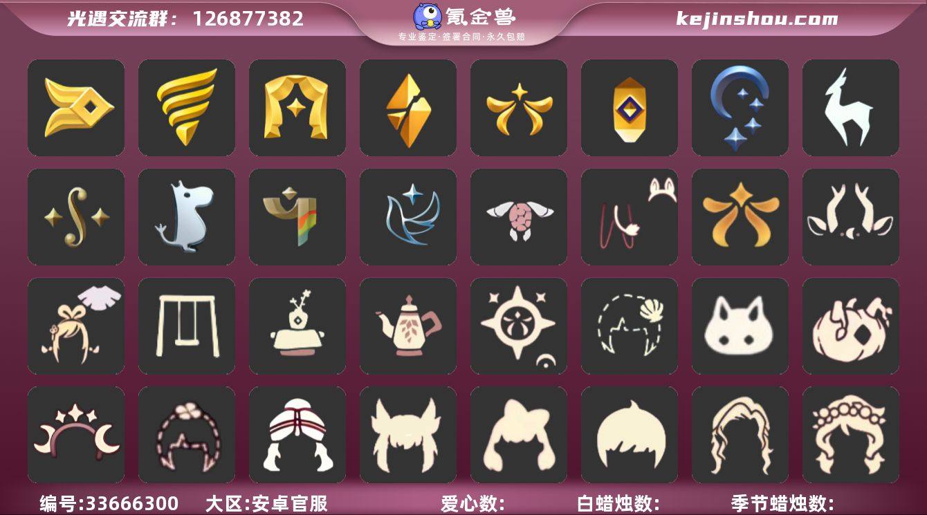 账号类型: 手机账号 季节已毕业: 风行季,潜海季,表演季,破晓季,欧若拉季,夜行季,追忆季,九色鹿季,二重奏季,姆明季,彩染季,青鸟季 完成地图: 晨岛,云野,雨林,霞谷,暮土,禁阁,全图毕业 珍稀物品: 白枭,透明蝶翼斗 礼包: 欧若拉之翼,九色鹿角,绊爱,秋千,茶桌,茶壶,人声乐器,贝壳,兔子,南瓜,星月头饰,四叶草,姆明饰品套装,海龟斗篷 裤子: 武士裤,背带裤,白棉裤,搓澡巾 面具: 黄鼠狼,红狐狸 面饰: 红耳机 项链: 围巾 发型: 蝴蝶结,正太,樱花,公主头,虚荣,猫耳,白枭 头饰: 花环 斗篷: 白金,红金,白鸟斗,花瓣斗篷,荧蓝斗篷 配饰: 雨伞,高音钢琴,吉他,笛子,大铃铛乐器,乐器 亮点: 重塑药水183