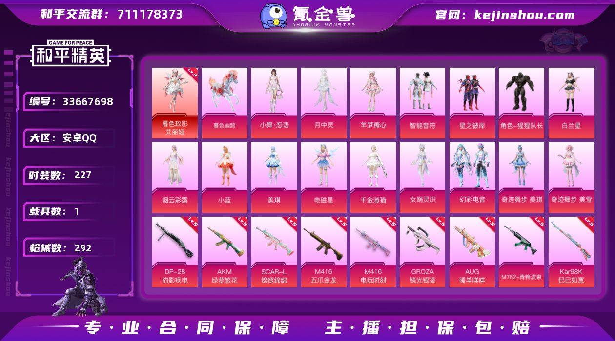 YZJ17363-可二次-安卓Q-1红装1稀有1载具16粉装15特效枪14热门【极品神装公主号 高印记 78级传奇收藏家 3级女神艾丽娅 小舞恋语 月中灵 女娲灵识 千金淑猫 羊梦糖心 纯白跃动 奶油梦幻熊 暗夜之虎 小丑鱼 粉螳螂 蓝螳螂 大橘为重 星谷精灵 都市丽猫 艾伦沃克 红眼罩 天命1级暮色之舞飞行器 暮色玫影背包头盔 6款飞行器】227套装292枪皮 100947热力值 21印记 历史超级王牌17星 【1红装】 暮色玫影-艾丽娅 (3级) 【1稀有】 浪漫天命 【1载具】 暮色幽蹄 【16粉装】 小蓝 美琪 女娲灵识 奇迹舞步美雪 奇迹舞步美琪 电磁星 白兰星 小舞恋语 千金淑猫 月中灵 烟云彩露 猩猩队长 羊梦糖心 幻彩电音 智能音符 星之彼岸 【15特效枪】 AKM-暮色玫影 (3级) M416-五爪金龙 (5级) SCAR-L-锦绣绵绵 (5级) SCAR-L-灵驹仙姬 (3级) M416-电玩时刻 (5级) AKM-绿萝繁花 (5级) Kar98K-巳巳如意 (5级) M762-青锋波束 (5级) DP-28-豹影疾电 (5级) AUG-暖羊咩咩 (5级) Mk14-甜梦熊击 (5级) AMR-智耀战神 (5级) GROZA-镜光银凌 (5级) Mk14-福马献瑞 (3级) ACE32-萌骑漫游 (3级) 【14热门】 8号机 Mark.06 小丑鱼 龟仙人 暗夜之虎 暗夜之虎 大橘为重 金羽特工 暗影哥特 醒狮腾龙 团圆交子 瑞龙福将 极速...
