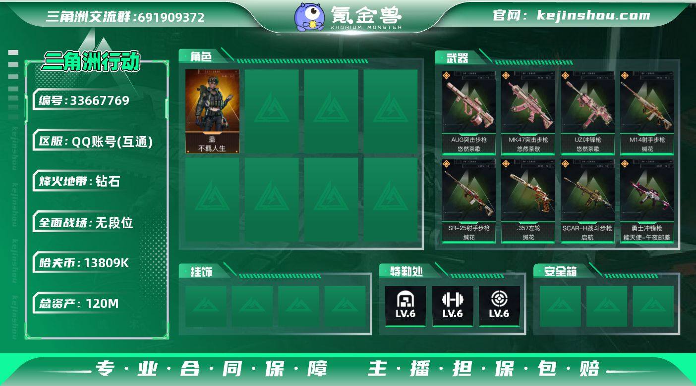【PTSJZ4865】总资产120M/哈夫币1380万/传说枪皮数15/战场等级1/行动等级60/安全箱等时效性道具以游戏内数据为准,详情请看图/蛊-不羁人生/近战-黑鹰/M4A1突击步枪-阿米娅/AUG突击步枪-悠然茶歇/SCAR-H战斗步枪-启航/CAR-15突击步枪-阿米娅/腾龙突击步枪-捞点薯条/MK47突击步枪-悠然茶歇/Vector冲锋枪-能天使-午夜邮差/UZI冲锋枪-悠然茶歇/勇士冲锋枪-能天使-午夜邮差/M14射手步枪-缄花/SR-25射手步枪-缄花/AWM狙击步枪-捞点薯条/.357左轮-缄花/93R-捞点薯条/复合弓-黑-天际线/QBZ95-1突击步枪-曙光/M16A4突击步枪-竞赛选手/SCAR-H战斗步枪-囚徒/G3战斗步枪-哈夫克警备/MP5冲锋枪-深海恐惧/MP7冲锋枪-六套之力/S12K霰弹枪-曙光/PKM通用机枪-阿萨拉特攻/QJB201轻机枪-炽焰/SV-98狙击步枪-林中猎手/SG552突击步枪-2026/SG552突击步枪-贴花艺术/ AK-12突击步枪-马年新春/SCAR-H战斗步枪-荣耀列队/PTR-32突击步枪-天网/MP5冲锋枪-弄臣/MP5冲锋枪-虎啸/Vector冲锋枪-先锋/SMG-45冲锋枪-行动开启/SMG-45冲锋枪-幻影结构/SMG-45冲锋枪-天网/勇士冲锋枪-前沿科技/M1014霰弹枪-幻影结构/M250通用机枪-天网/Mini-14射手步枪-荣耀列队/SKS射手步枪-弄臣/SR-25射手步枪-开拓/SR-9射手步枪-...