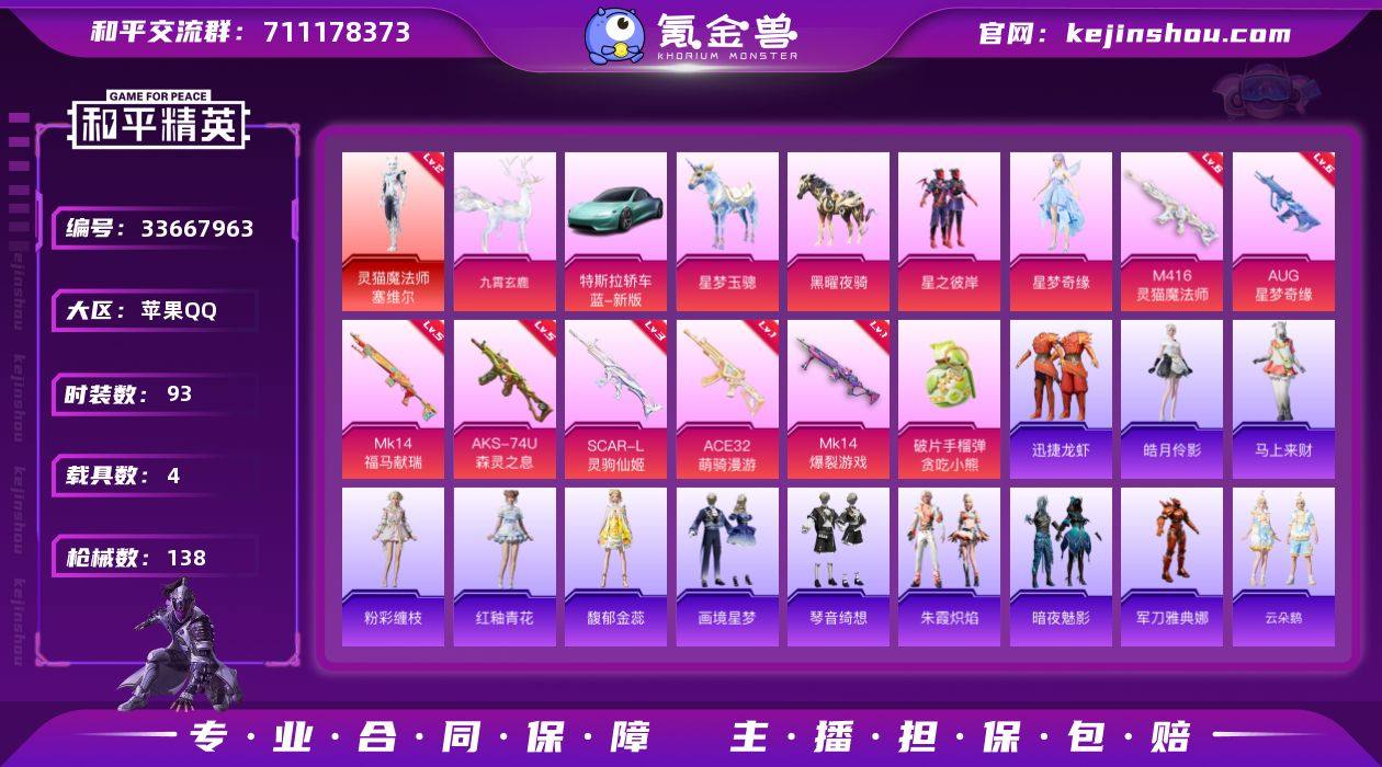 【LHPX2024】绝世印记1 【特价出售/店主推荐】AUG-星梦奇缘(六级)苹果 手Q-1神装-2粉装-8特效枪-4载具-5粉色飞行器-48193热力值-4王牌印记-93套装-138枪皮【红色神装等级】:灵猫魔法师-塞维尔(二级)【热门品类】:角色-军刀雅典娜【粉色套装】:粉装-星之彼岸,角色-星梦奇缘【粉色枪皮等级】:SCAR-L-灵驹仙姬(三级),M416-灵猫魔法师(六级),AUG-星梦奇缘(六级),ACE32-萌骑漫游(一级),AKS-74U-森灵之息(五级),Mk14-爆裂游戏(一级),Mk14-福马献瑞(五级)【粉色载具】:特斯拉Roadster(水滴蓝),星梦玉骢,黑曜夜骑,九霄玄鹿【粉色枪皮】:SCAR-L-灵驹仙姬,M416-灵猫魔法师,AUG-星梦奇缘,ACE32-萌骑漫游,AKS-74U-森灵之息,Mk14-爆裂游戏,Mk14-福马献瑞,破片手榴弹-贪吃小熊【粉色飞行器】:香车宝马飞行器,星梦奇缘飞行器,灵猫魔法师飞行器,云梦轻舟飞行器