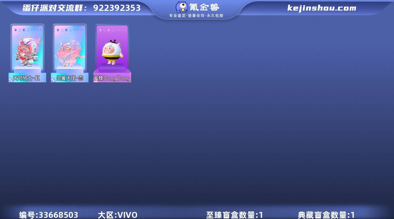 2至臻28紫,蜜蜂羊,天穹骑士-虹,圣翼天使-恋 【 XTD404】 ✅渠道:vivo✅登陆方式:手机号 ✅历史潮流:48477✅氪条:11240 ✅至臻数量:2✅ 紫色套装数量:28✅载具:无 ✅至臻套装:天穹骑士-虹,圣翼天使-恋 ✅紫色套装:饶舌诗人,淘气丸子,仔仔熊,蓝樱爱丽丝,机械鼓手贝克,仓鼠米仔,蜜蜂dongdong,元气丸子,狸猫大力,大娃,莓莓甜心兔,御狸奴,北极兔卢米,极光女神典伊,沸羊羊,美羊羊 ✅背饰:幽灵剧院,天照耀盾,流火花环,裁决圣环 ✅热门动作:甩手舞,双人牵手,双人撒花,圣光裁决