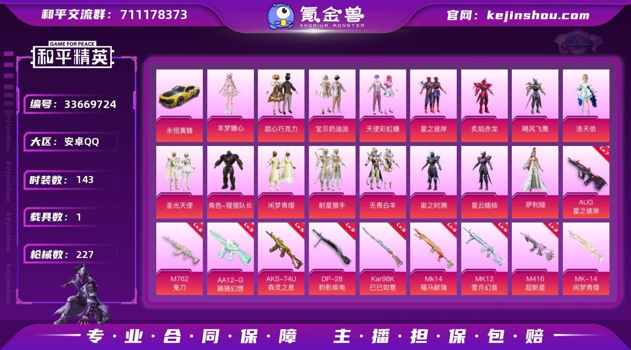 YZJ17383-包人脸-安卓Q-1稀有1载具16粉装10特效枪7热门143套装227枪皮 69297热力值 极品小女号 地铁满天赋 M4超新星 满级AUG星之彼岸 6级M762鬼刀 巧克力三姐妹 洛天依 羊梦糖心 圣光天使 无畏白羊 权威小菠萝 暖暖麦兜 红眼罩 鲨鱼服 天命 凤舞九天飞行器 阿柴枸杞伙伴 许愿神龙伙伴 10印记 历史超级王牌14星 【1稀有】 浪漫天命 【1载具】 永恒黄蜂 【16粉装】 萨利娅 宝贝奶油派 天使彩虹糖 甜心巧克力 洛天依 猩猩队长 羊梦糖心 无畏白羊 射星猎手 闲梦青缨 宙之时溯 星云暗核 圣光天使 星之彼岸 炙焰赤龙 飓风飞鹰 【10特效枪】 M416-超新星 (3级) AKS-74U-森灵之息 (5级) Kar98K-巳巳如意 (5级) M762-鬼刀 (6级) DP-28-豹影疾电 (5级) Mk14-闲梦青缨 (7级) MK12-雪月幻音 (4级) AUG-星之彼岸 (7级) Mk14-福马献瑞 (4级) AA12-G-萌骑幻想 (5级) 【7热门】 龟仙人 迅捷狂鲨 暗影哥特 团圆交子 狂沙舞者 破蛋小黄鸡 M762-瑞龙福将 【2飞行器】 星之彼岸飞行器 萌物绒绒飞行器 【1头盔】 甜心宝贝头盔 【1背包】 甜心宝贝背包 营地ID:763271557