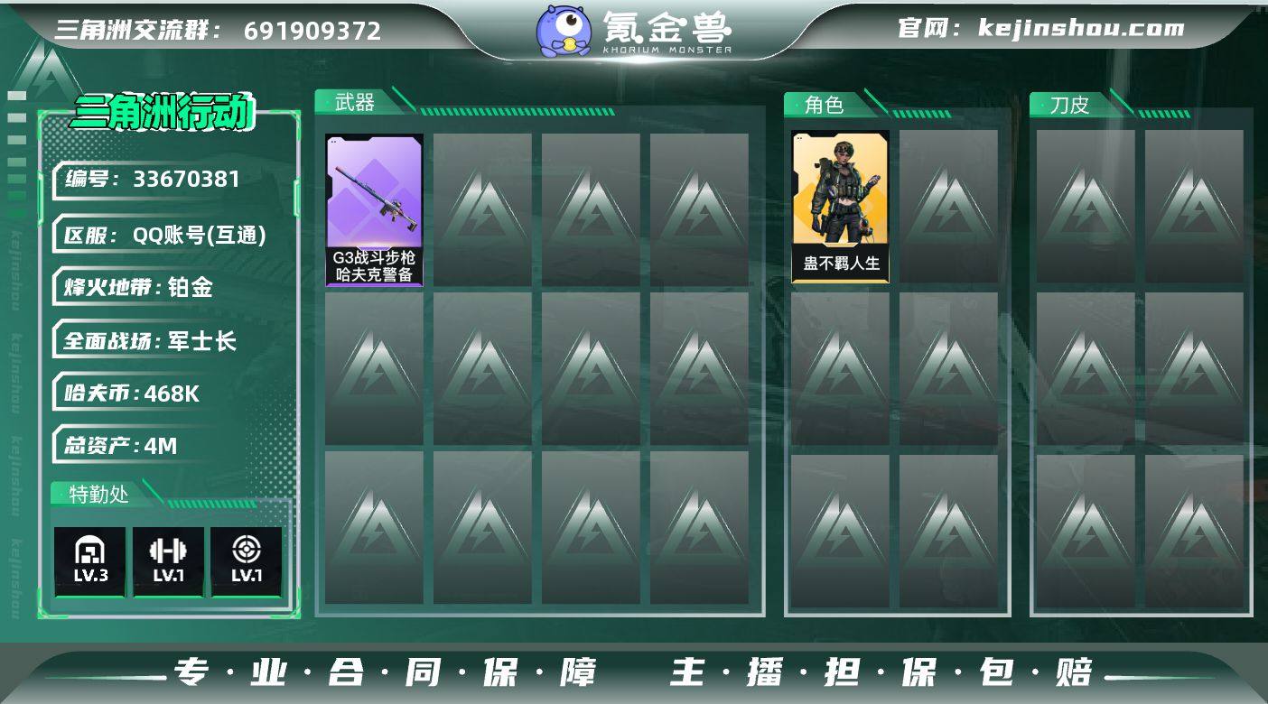【XJ451】总资产4M/哈夫币46万/战场等级16/行动等级35/安全箱等时效性道具以游戏内数据为准,详情请看图/蛊-不羁人生/近战-黑鹰/G3战斗步枪-哈夫克警备/QJB201轻机枪-炽焰/SG552突击步枪-贴花艺术/SCAR-H战斗步枪-荣耀列队/MP5冲锋枪-哈夫克卫队/勇士冲锋枪-冰天雪地/M1014霰弹枪-幻影结构/Mini-14射手步枪-荣耀列队/SV-98狙击步枪-星链科技/SV-98狙击步枪-哈夫克航天/SV-98狙击步枪-精英联盟/SG552突击步枪-猎豹图案/M4A1突击步枪-粉色涂装/M4A1突击步枪-高雅黑/M4A1突击步枪-海色/QBZ95-1突击步枪-高雅黑/M16A4突击步枪-高雅黑/AUG突击步枪-浅蓝涂装/M7战斗步枪-黑巧甜心/SG552突击步枪-海浪/SG552突击步枪-狂欢/SCAR-H战斗步枪-数码迷彩/G3战斗步枪-高雅黑/PTR-32突击步枪-黄蜂/AS Val突击步枪-黑巧甜心/MP5冲锋枪-海色/MP5冲锋枪-黄蜂/P90冲锋枪-黑巧甜心/UZI冲锋枪-狂欢/M1014霰弹枪-高雅黑/PKM通用机枪-变色龙/M249轻机枪-黄蜂/QJB201轻机枪-典雅/SR-25射手步枪-黄蜂/SR-25射手步枪-黑巧甜心/沙漠之鹰-海浪/挂饰-摇钱树/挂饰-蚀金玫瑰/暗行哨兵/挂饰-福禄/挂饰-聚宝盆/挂饰-紧急撤离/挂饰-麻将