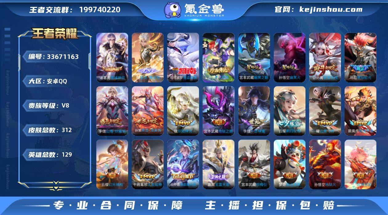器灵螭龙·星域神启·九霄神辉·怪盗基德·马超琥珀纪元·孙策时之奇旅·祈雪灵祝·乘龙淬吴钩·山海炽霜斩·至尊宝·可二次】w25491-安卓Q-129英雄-312皮肤-13王者印记-200铭文-贵族积分6w【贵族8】【2典藏·1无双·2珍品·3星传说·26传说·21按键】【因赛季更新游戏段付以上号为准!】 【英雄全皮】:孙权全皮,敖隐全皮,空空儿全皮,影全皮,少司缘全皮 【荣耀典藏】:诸葛亮星域神启,花木兰九霄神辉 【无双皮肤】:曜器灵螭龙剑 【珍品传说】:孙策时之奇旅,马可波罗怪盗基德 【星元皮肤】:镜破晓神光,孙悟空幽冥火,宫本武藏幽冥之眼 【传说皮肤】:后羿神树通天,澜愿照九州拓,虞姬愿照岁时盈,云缨幻光神枪,裴擒虎祥瑞亨通,嬴政玄雷天君,桑启鸣野蒿,庄周牧神诗旅,云中君群星魔术团,孙策乘龙淬吴钩,马超琥珀纪元,宫本武藏惊梅引,云缨鹤归松栖,澜电玩雷克斯,李信山海炽霜斩,李白诗剑行,周瑜音你心动,公孙离祈雪灵祝,镜炽阳神光,虞姬启明星使,曜云鹰飞将,李信一念神魔,干将莫邪久胜战神,梦奇胖达荣荣,宫本武藏地狱之眼,孙悟空地狱火 【限定皮肤】:蒙犽顽岩魄,蔡文姬夏日便利店,虞姬夏日便利店,姜子牙天穹之誓,李白谪仙醉月,狄仁杰阴阳师,赵云皇家上将...