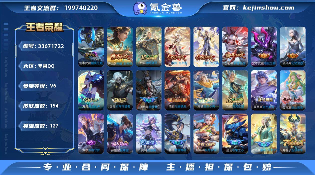 ky 苹果(q)区 154皮 7传说 52限定 4王者印记 1星 亮点推荐:【神骥·赴朔漠 愿照·九州拓 愿照·山河定 记忆之芯】道具内容:4按键 30亲密玫瑰 8浓情玫瑰