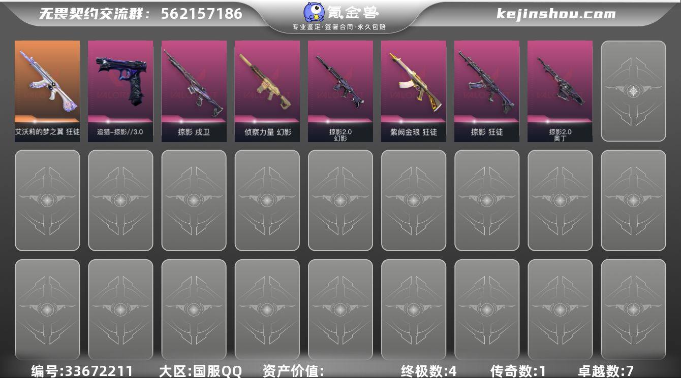 【NF514】【套装】:回火礼包:掠影套装,掠影//3.0套装【英雄】:幻棱,炼狱,暮蝶,壹决,铁臂,捷风,雷兹,幽影,不死鸟,贤者,猎枭,芮娜,尚勃勒,霓虹,斯凯,夜露,K/O,盖可,黑梦,钢锁【近战武器】:近战武器-蒙太奇 战斧,近战武器-碎心裂刃,近战武器-影蝶,近战武器-紫金爪刀【狂徒】:狂徒-艾沃莉的梦之翼,狂徒-掠影,狂徒-紫阙金琅【幻影】:幻影-侦察力量,幻影-掠影//2.0,幻影-蒙太奇【戍卫】:戍卫-掠影【战神】:战神-蒙太奇【奥丁】:奥丁-掠影//2.0【骇灵】:骇灵-蒙太奇【追猎】:追猎-掠影//3.0【狂怒】:狂怒-蒙太奇【卡面】:无畏契约GO!第一卷:芮娜 卡面,无畏契约GO!第一卷:零 卡面,代号红色 卡面,新兵报到 卡面,V契约 卡面,无畏契约 卡面【喷漆】:买装还是存钱 喷漆,胜利属于无畏契约 喷漆,GLHF 喷漆,无畏契约 喷漆【挂饰】:天外飞客 挂饰,无畏契约 纪念币 挂饰