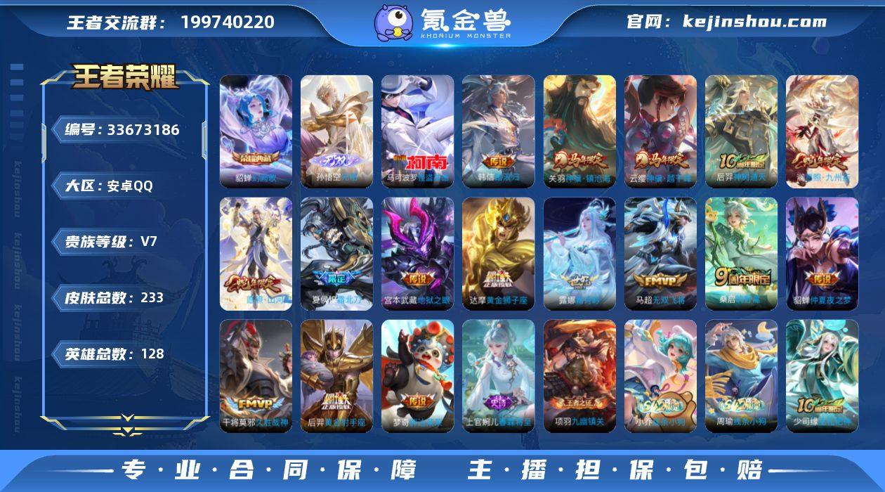 贵族7-233皮-1典藏-1无双-1珍品传说-16传说-5全皮-改名卡9-灵宝改名卡1-星传说幽冥之眼-金色仲夏夜安卓手Q357区233皮1典藏16传说1无双1珍品传说V7 营地ID1785589805无双王者【珍品传说皮肤】:怪盗基德【无双皮肤】:无相【荣耀典藏】:幻阙歌【优质限定皮肤】:至尊宝,无双飞将【传说皮肤】:踏浪归,霜月吟,黄金狮子座,神骥·越千峰,神骥·镇沧海,地狱之眼,神树通天,久胜战神,愿照·九州拓,鸣野蒿,胖达荣荣,黄金射手座,愿照·山河定,霜北刀,无双飞将,仲夏夜之梦【史诗皮肤】:摇滚巨星,星界战将,春霖将至,器灵·浮梦炉,星夜王子,无心,线条小狗,九幽镇关,夏日便利店,光弋星穹,巫礼祀神,万灵启世,涂山容容,百相守梦,乱世虎臣,未来纪元,石田雨龙,幽灵船长,皇家上将,星界游侠,曙光守护者,偶像歌手,猫狗日记,鹰眼统帅,水果甜心,心灵战警,五谷丰年,拒霜思,魅力维加斯,箭羽风息,江河有灵,至尊宝,地狱燃心,魔术师,龙之律动,破空之剑,李小龙,原初追逐者,驭风魔法,鸭鸭历险记,狂想玩偶喵,茶境仙,冰冠公主,纤云弄巧,暗影游猎,千年之狐,黄金分割率,鬼剑武藏,东方月初,时之恋人,浮光幕影,无限星赏官,傲雪梅枪,怒海争锋,女仆咖啡,谪仙醉月,引擎之心,水晶猎龙者,特工魅影,化蝶舞,战舞者,圣诞恋歌,...