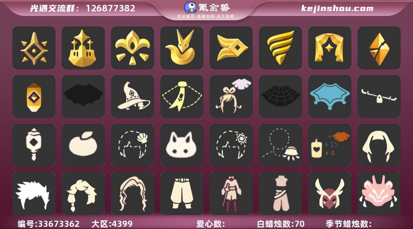 [18959916]安卓官服 手机账号 3珍稀物品 9毕业季 3毕业图 70蜡烛 【珍稀物品】白枭(帝企鹅发),阿努比斯(狗头),透明蝶翼斗 【季节已毕业】预言季,梦想季,集结季,小王子季(王子季),风行季,潜海季,表演季,破晓季,追忆季 【完成地图】云野,雨林,霞谷 【礼包】水母(水母肩饰),巫师(巫师帽),绊爱(绊爱斗篷)(绊爱礼包),橘子(大橘大利),雪花(雪花发夹),贝壳(贝壳发饰),兔子(玉兔头饰)(玉兔发饰)(兔子发饰),创始人(创始人斗篷),围巾(小王子斗篷)(小王子围巾),蝙蝠套(蝙蝠斗篷)(南瓜头),蜘蛛斗(蛛丝斗篷)(蛛网斗篷),瑞雪(瑞雪斗篷)(暖冬瑞雪),灯笼(中秋灯笼),跷跷板(情人跷跷板) 【裤子】王子服(小王子套装),蓝绿裤(高领舞服),武士裤,击剑裤 【面具】黄眉企鹅面具,夜行毕业面具(棕熊面具),呼吸面具(潜水面具),贴花面具(丛林黑面具),阿努比斯,凤凰面具 【项链】围巾(肩带) 【发型】小王子发型,单侧绑发(单边小辫),留辫蘑菇头,虚荣 【头饰】行军锅头盔(六边锅帽子)(双耳锅帽子),羽毛发饰(多羽发饰) 【斗篷】冥龙斗篷,燕尾斗篷,黄色连帽披风(连帽斗篷)(斜边队长斗篷),遥鲲斗篷(双翼遥鲲斗),粉红绒毛斗篷(绒毛斗篷),蟑螂斗(凤凰斗篷),海洋斗 【配饰】鲲灯(追忆之书)