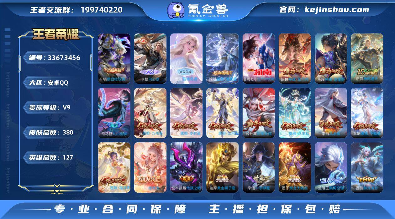 贵族9-贵族积分145005-380皮1典藏30传说2无双2珍品传说 卓手Q282区380皮1典藏30传说2无双2珍品传说V9 营地ID2119792539永恒钻石IV【珍品传说皮肤】:江户川柯南,器灵·落星盏【无双皮肤】:问心剑,雪境奇遇【荣耀典藏】:银白咏叹调【优质限定皮肤】:凤求凰,至尊宝,祈雪灵祝,神威【传说皮肤】:凤求凰,胖达荣荣,神骥·聚万邦,神骥·逐星野,神树通天,地狱之眼,九山相柳,鸣野蒿,黄金天蝎座,乞巧织情,仲夏夜之梦,游龙清影,超时空战士,祈雪灵祝,默契交锋,黄金狮子座,一念神魔,启明星使,久胜战神,愿照·山河定,愿照·岁时盈,黄金白羊座,续相思,愿照·千秋盛,祥瑞亨通,愿照·九州拓,愿照·福禄聚,玄雷天君,愿照·众生和,幻光神枪【史诗皮肤】:线条小狗,地狱岩魂,百晓客,时之彼端,瓦猫非猫,锁墨魂,圣诞狂欢,逐浪之夏,光弋星穹,巫礼祀神,遇见飞天,星夜王子,涂山容容,至尊宝,节奏热浪,织梦人,滕王阁序,幻珠鲛人,百相守梦,赞萌露比,百相守梦,石田雨龙,暗夜贵公子,狮舞东方,鬼剑武藏,乱世虎臣,青焰无极,心灵战警,乘龙·聚宝船,冰雪圆舞曲,蔬乡物语,缤纷独角兽,五谷丰年,幽灵船长,摇滚巨星,热力回旋,女仆咖啡,遇见神鹿,航海奇遇记,龙鼓争鸣,胡桃异想国,紫霞仙子,逐梦之星,冰锋战神,诗语江南,云间...
