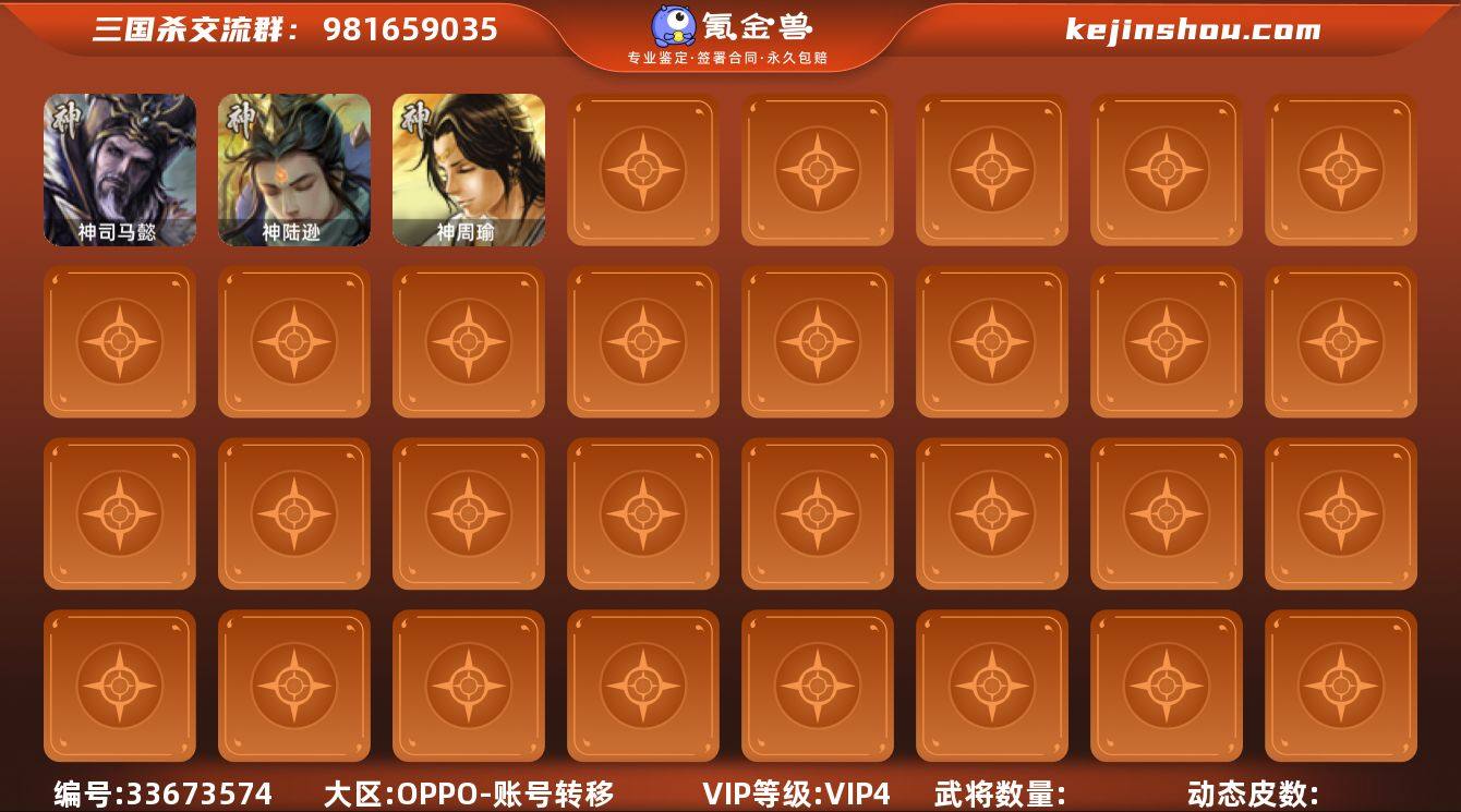 VIP等级:VIP4 卖家说:少强开谋诸葛势于吉神司马懿大宝天宫鲍信秒杀蒋琬等 本月强开带神司马懿共6个