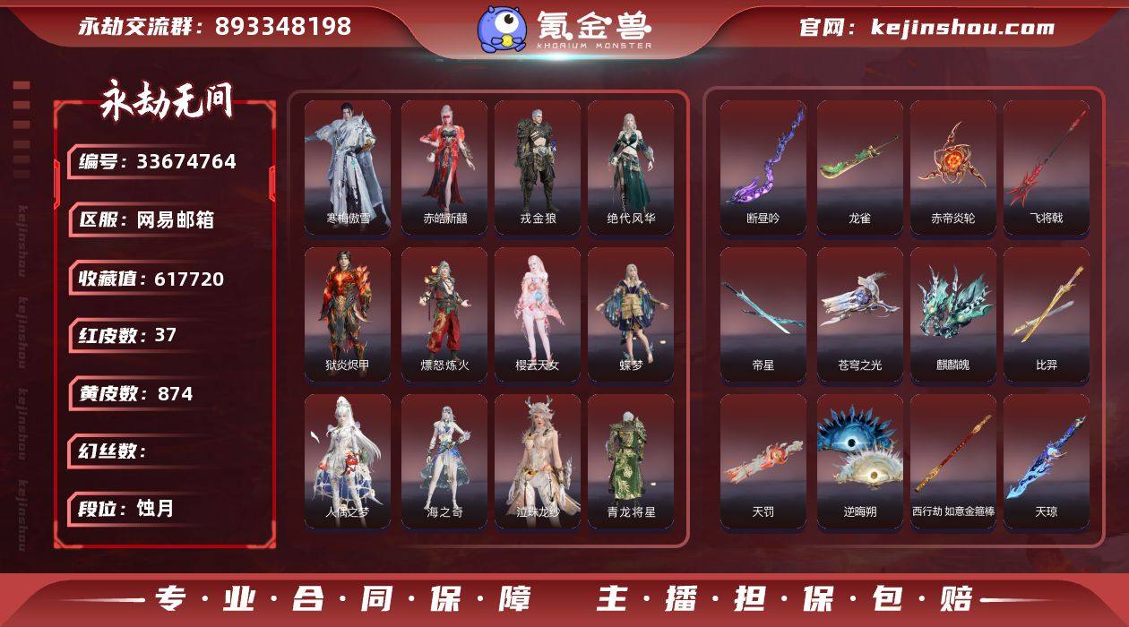 37红,3290金砖,仓库有一个张起灵露华礼包(未使用,买就送,买家可以自己卖),20技能奥义,一个凌波奥义自选礼,胡为龙之道,张起灵守墨麒全套(衣服,傲义特效,麒麟魄),网易支付未注册,沈妙金石瑞兽,白泽180天,小刀,拒绝屠龙刀