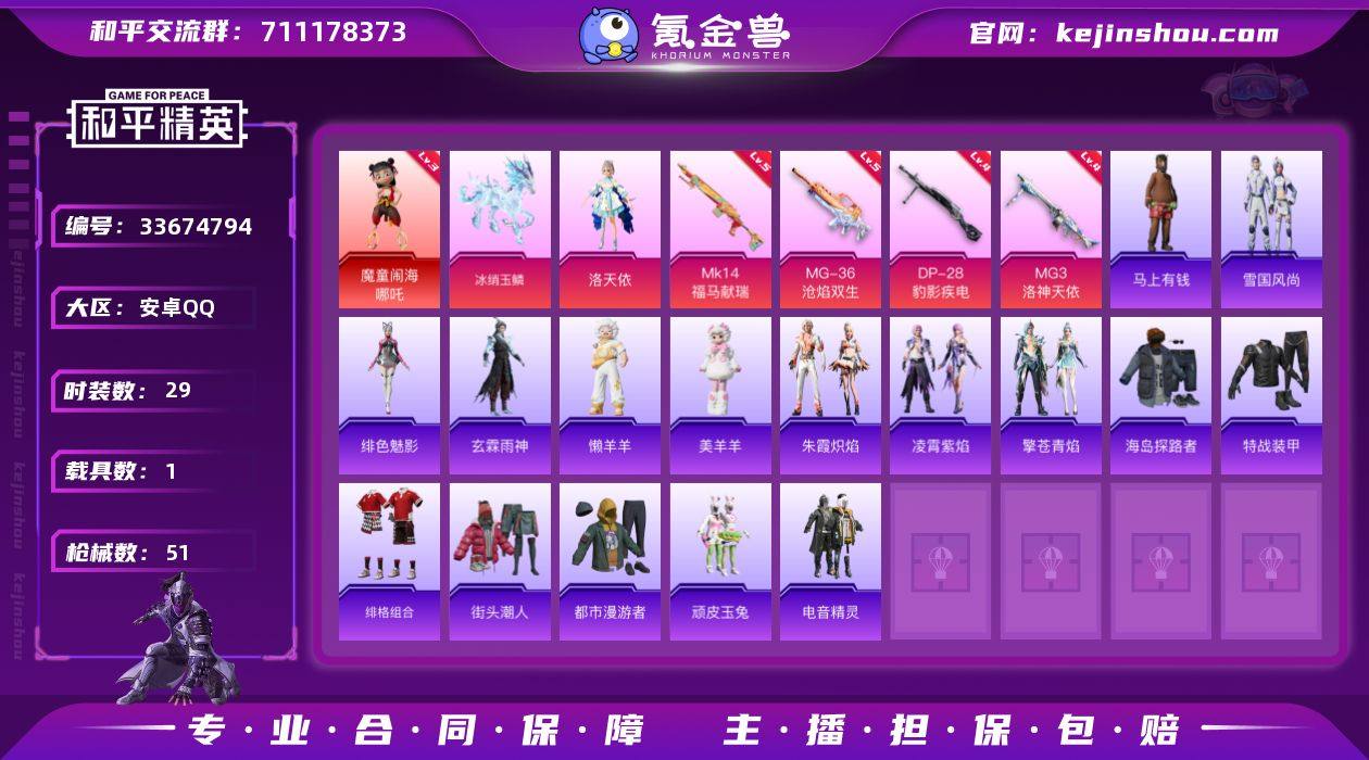 【LHPX2637】红装哪吒(三级) 【特价出售/店主推荐--热门套装洛天依】安卓 手Q-1神装-1粉装-4特效枪-1载具-3粉色飞行器-19326热力值-3王牌印记-29套装-51枪皮【红色神装等级】:魔童闹海-哪吒(三级)【粉色套装】:角色-洛天依【粉色枪皮等级】:Mk14-福马献瑞(五级),DP-28-豹影疾电(四级),MG3-洛神天依(四级),MG-36-沧焰双生(五级)【粉色载具】:冰绡玉鳞【粉色枪皮】:Mk14-福马献瑞,DP-28-豹影疾电,MG3-洛神天依,MG-36-沧焰双生【粉色飞行器】:飞天猪飞行器,灵珠游龙飞行器,极意拳锋飞行器