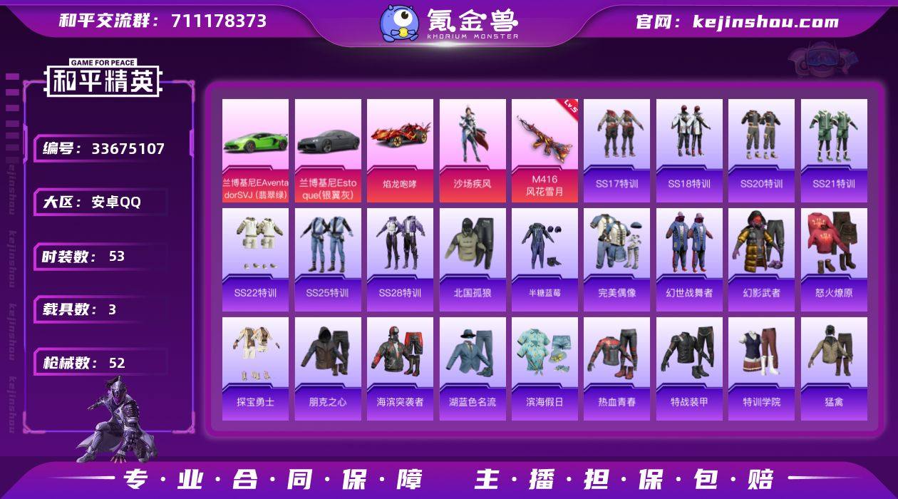 53套装/枪械1/装备48/载具3/战备50/热力值19822/五级M416-风花雪月/沙场疾风/兰博基尼Aventador SVJ(翡翠绿)/兰博基尼Estoque(银翼灰)/焰龙咆哮/M416风花雪月/洛神天依降落伞/AKM-彩虹符号/AKM-生命誓言/AKM-虎虎生威/AKM-龙的传人/M16A4-甜心亚梦/M16A4-红色方程式/SCAR-L-炫彩节奏/SCAR-L-红色方程式/M416-红色方程式/GROZA-异彩先驱/AUG-耀粉歌者/QBZ-彩虹符号/M762-瑞龙福将/G36C-暗夜玫瑰/AC-VAL-甜心亚梦/UZI-炫彩节奏/UZI-生命誓言/UZI-红色方程式/UMP45-夜灯/UMP45-生命誓言/Vector-彩虹符号/Vector-暗夜玫瑰/汤姆逊-异彩先驱/汤姆逊-耀粉歌者/MP5K-异彩先驱/M24-炫彩节奏/Mini14-异彩先驱/Mini14-金鼠迎春/Win94-瑞龙福将/S686-生命誓言/S12K-瑞龙福将/S12K-幻世战舞者/DBS-甜心亚梦/M249-破晓战魂/DP-28-甜心亚梦/DP-28-齐天大圣/MG3-瑞龙福将/SS17特训/SS18特训/SS20特训/SS21特训/SS22特训/SS25特训/SS28特训/北国孤狼/半糖蓝莓/完美偶像/幻世战舞者/幻影武者/怒火燎原/探宝勇士/朋克之心/海滨突袭者/湖蓝色名流/滨海假日/热血青春/特战装甲/特训学院/猛禽/玉兔迎春/甜蜜告白/疯狂小兔子/福星高照/竞技名士/竞技达人朋克/绮丽涂鸦/蓝色运动/虎虎生威吉莉/都市漫游...
