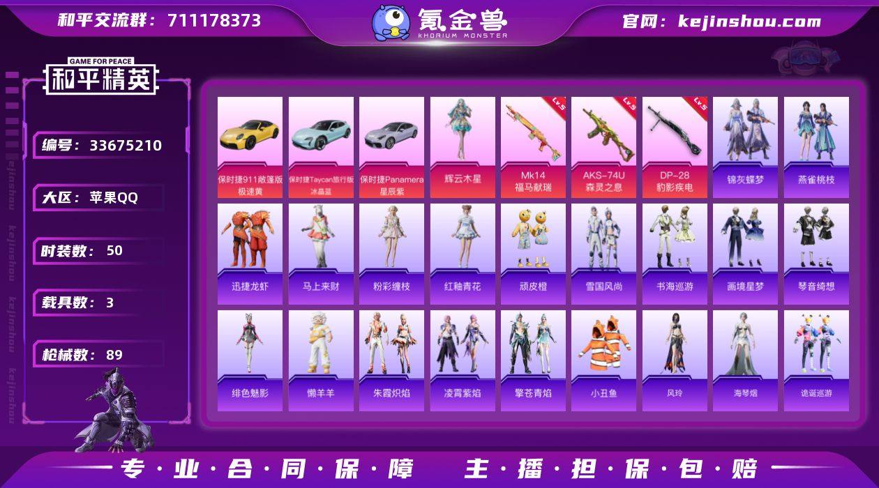 【LHPX2639】【特价出售/店主推荐--热门套装小丑鱼】苹果 手Q-1粉装-3特效枪-3载具-2粉色飞行器-27607热力值-5王牌印记-50套装-89枪皮【热门品类】:套装-小丑鱼【粉色套装】:角色-辉云木星【粉色枪皮等级】:AKS-74U-森灵之息(五级),Mk14-福马献瑞(五级),DP-28-豹影疾电(五级)【粉色载具】:保时捷911 敞篷版(极速黄),保时捷Taycan 旅行版(冰晶蓝),保时捷Panamera(星辰紫)【粉色枪皮】:AKS-74U-森灵之息,Mk14-福马献瑞,DP-28-豹影疾电【粉色飞行器】:炫彩糖果飞行器,星之彼岸飞行器