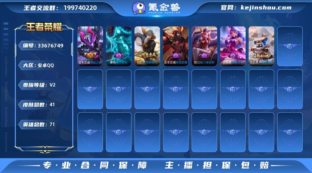 JJ4407:安卓Q-V2-可二次-地狱之眼-非凡王者-71英雄-41皮肤-1传说-5史诗 【稀有英雄】 敖隐 娜可露露 韩信 【传说皮肤】 地狱之眼 【限定皮肤】 地狱之眼 【史诗皮肤】 鬼剑武藏 魅力维加斯 偶像歌手 鹰眼统帅 幽灵船长 【勇者皮肤】 黑桃队长 阴阳师 阿尔法小队 死亡骑士 敏锐之力 掌控之力 未来纪元 万象初新 教廷特使 幻想奇妙夜 谧流熔炉 噬灭天穹 景韶洛都 【其他皮肤】 战争骑士 龙域领主 精灵王 碧珀绯影 星航指挥官 英喵野望 午夜歌剧院 异域舞娘 范海辛 占星师 激情绿茵 尼罗河女神 归虚梦演 西部大镖客 威尼斯狂欢 绝影神枪 孤猎