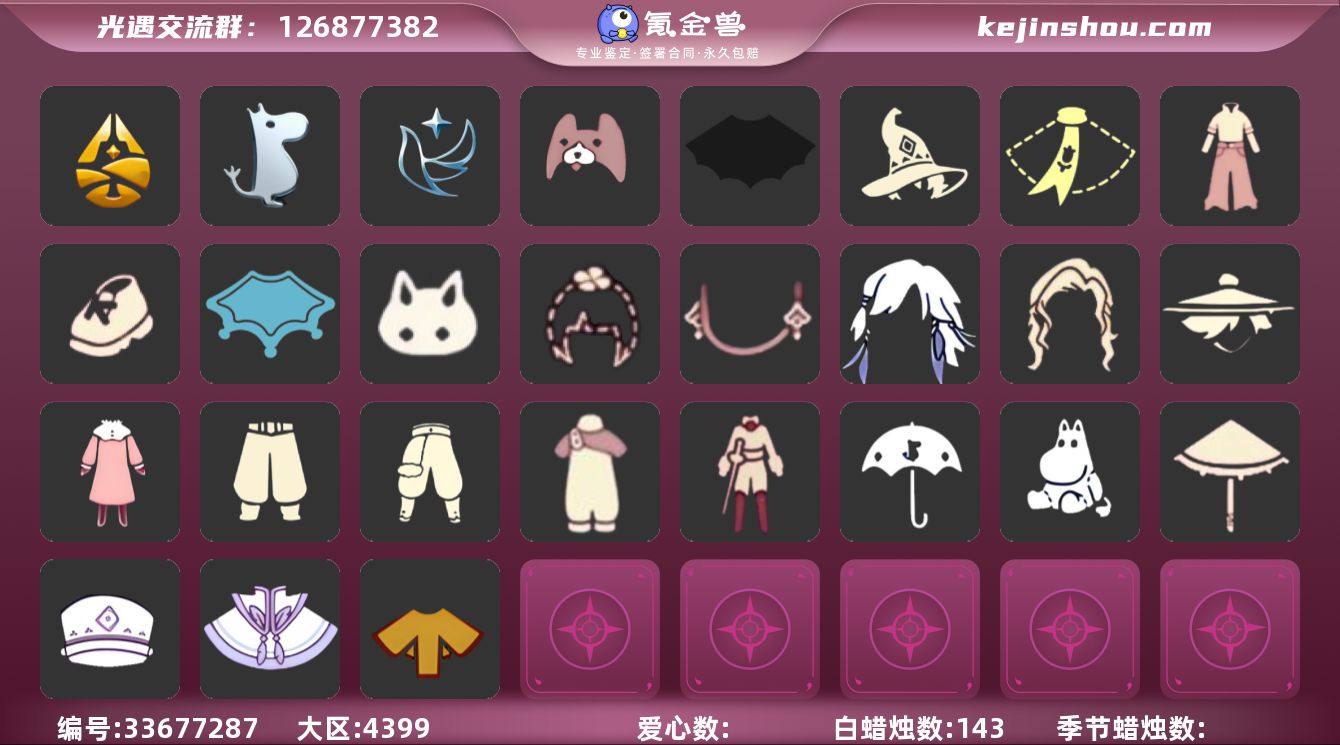 VIVO 手机账号 1珍稀物品 3毕业季 2毕业图 143蜡烛 【珍稀物品】彩虹围巾(五塑彩带斗) 【季节已毕业】归巢季,姆明季,青鸟季 【完成地图】晨岛,霞谷 【礼包】牛仔裤(阔腿牛仔),运动鞋(跃动跑鞋),姆明饰品套装(姆明尾巴),巫师(巫师帽),小狗周年发饰(小狗周年头饰),兔子(玉兔头饰)(玉兔发饰)(兔子发饰),四叶草(四叶草头饰),新年耳钉(金鳞耳饰),围巾(小王子斗篷)(小王子围巾),蝙蝠套(蝙蝠斗篷)(南瓜头),瑞雪(瑞雪斗篷)(暖冬瑞雪) 【裤子】妮妮裙子(妮妮长裙),武士裤,背带裤,搓澡巾,击剑裤 【面饰】青鸟毕业面饰(青鸟面饰) 【发型】虚荣,归巢毕业发型(五塑彩羽发),若笠(箬笠) 【头饰】平顶帽 【斗篷】青鸟毕业斗篷(青鸟斗篷),黄色蓑衣(道袍),海洋斗 【配饰】小红伞(姆明红伞)(姆明大伞),姆明抱枕,雨伞