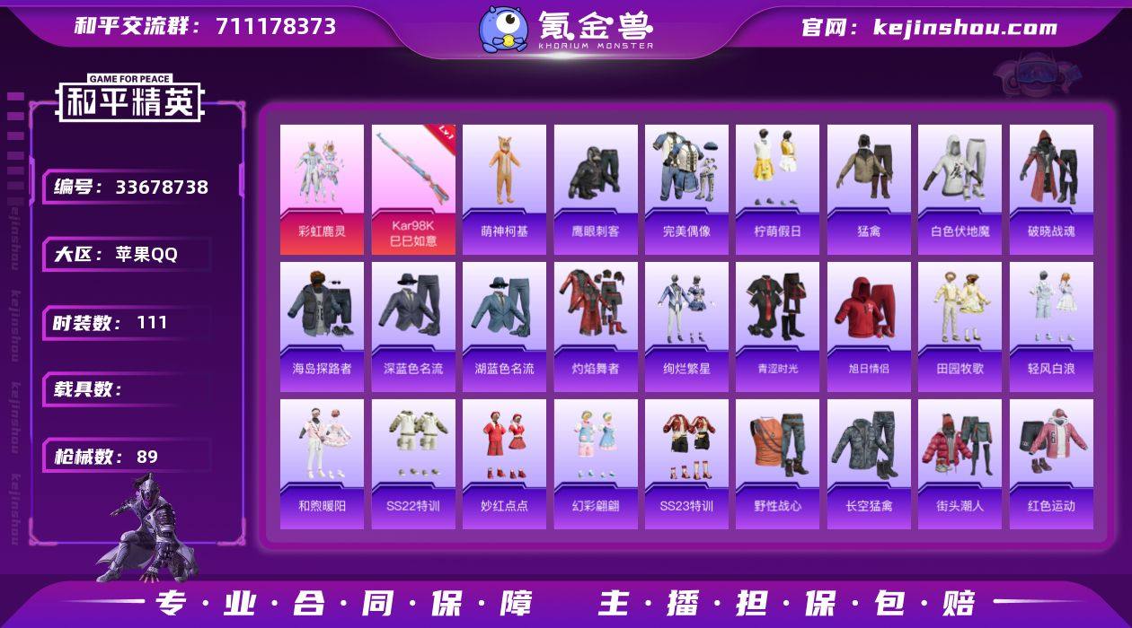 HM6901苹果Q区一体号-1粉装-2特效枪-萌熊伴侣背包-地铁天赋-王者108皮4传说-23145热力值-1王牌印记-64套装-89枪皮【优质套装】: 彩虹鹿灵【特效枪等级】:Kar98K-巳巳如意(五级- Kar98K-巳巳如意)【优质武器皮肤】: Kar98K-巳巳如意【稀有武器皮肤】: Kar98K-巳巳如意 PKM-啾咪啾咪 M416-红色方程式 M416-蓝色火焰 M416-糯团青竹 M416-绯红前夜 AKM-影袭 AKM-彩虹符号 AKM-破晓战魂 SCAR-L-红色方程式 SCAR-L-夜灯 SCAR-L-炫彩节奏 M16A4-红色方程式 M16A4-蓝色火焰 GROZA-影袭 GROZA-田园牧歌 AUG-耀粉歌者 AUG-海螺星光 M762-绯红前夜 M762-天降萌叽 Mk47-妙红点点 AC-VAL-天降萌叽 AC-VAL-乌木金纹 蜜獾-天降萌叽 Kar98K-影袭 M24-影袭 AWM-天降萌叽 莫辛纳甘-乌木金纹 AMR-妙红点点 SKS-炫彩节奏 VSS-田园牧歌 Mini14-耀粉歌者 Mini14-林间仙鹿 Mk14-海螺星光 Mk14-暗星紫秘 SLR-彩虹符号 UZI-影袭 UMP45-夜灯 Vector-生命誓言 Vector-田园牧歌 汤姆逊-林间仙鹿 P90-乌木金纹 S686-生命誓言 S12K-破晓战魂 S12K-夜灯 SPAS-12-田园牧歌 M249-妙红点点 DP-28-彩虹符号 MG3-青空秋雨 MG3-幻世战舞者 MG3-妙红点点 MG3-乌木金纹 大砍刀-青空秋雨 平底锅-光之冒险 平底锅-田...