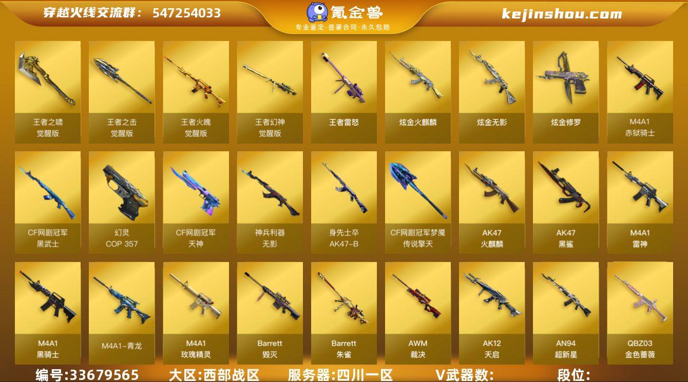T194602cf西部/四川一区/77V/王者幻神/scar白虎/毁灭+黑大圣+音效卡/火麒麟+心动糖果+音效卡/黑骑士+伏羲+音效卡/qbz金色蔷薇/6烈龙+死亡之眼/cop幻灵/影豹/王者瞳闭月羞花/灵狐者职业经理(4防生化属性)/3音效卡/多皮