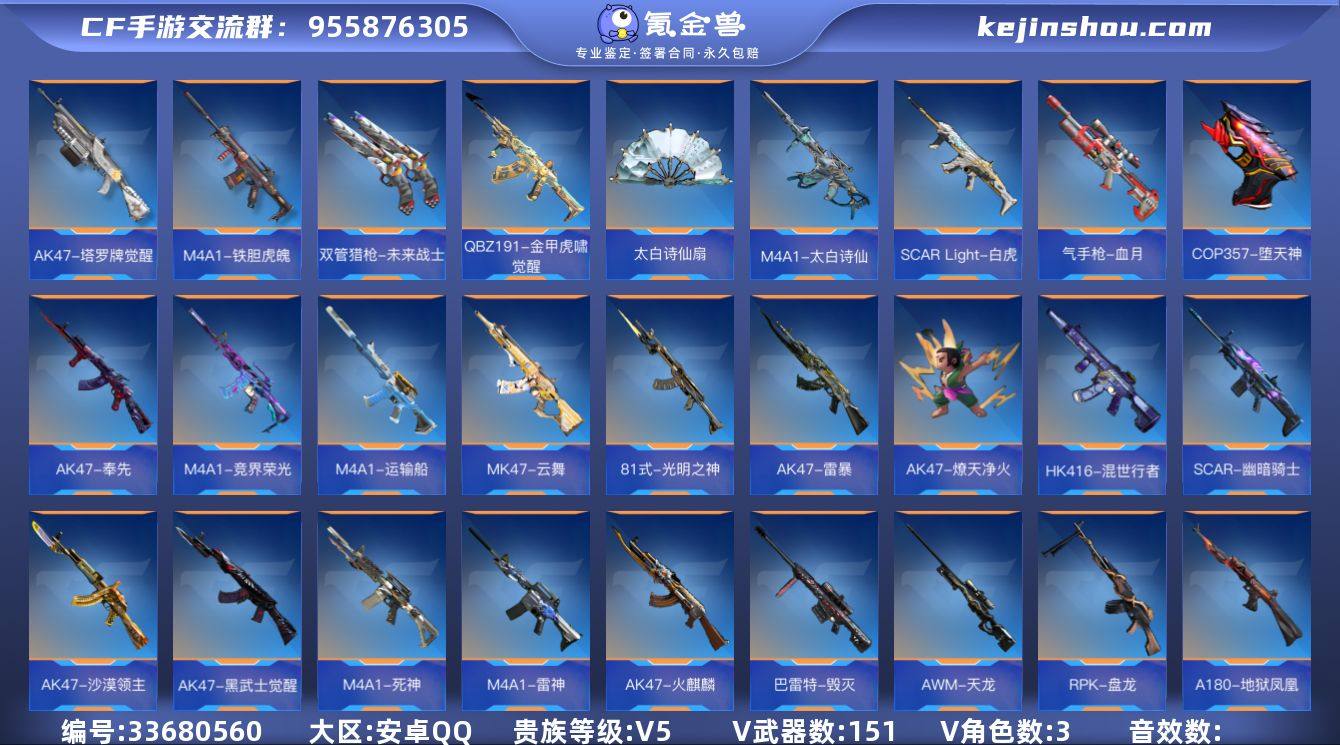 【QZX2568】VIP5/151V/王者之影/王者之蝶/王者之尊/G3A3-凤雏/M200-权/COP357-安琪拉/AN94-盖/81式-光明之神/AK47-奉先/COP357-堕天神/AK47-奉先-无双/斯薇特-X/刀锋-枪战王者/魅影/AK47-火麒麟/AK47-黑武士觉醒/AK47-沙漠领主/AK47-燎天净火/AK47-雷暴/AK47-木兰/AK47-塔罗牌觉醒/AK47-谜城烟火/M4A1-雷神/M4A1-死神/M4A1-竞界荣光/M4A1-运输船/M4A1-太白诗仙/M4A1-铁胆虎魄/SCAR-幽暗骑士/SCAR Light-白虎/FAMAS-湮灭/M14EBR-葫芦山庄/HK416-混世行者/HK417-炎龙铠甲/G36-李星云/MK47-云舞/G3A3-衍神兵/FN F2000-十绝阵觉醒/QBZ97-智控天眼/QBZ191-金甲虎啸 觉醒/SBR-湮灭/AWM-天龙/巴雷特-毁灭/GM6-逆骨/RPK-盘龙/QBB95-极光/寒霜烈龙/双持斯泰尔-天使/A180-地狱凤凰/PP19野牛-造纸术觉醒/地狱火/地狱烈炎/M1887-幽冥玄喵觉醒/USP-神罚/USP-太白诗仙/气手枪-血月/蟒蛇-妙才/改装GLOCK-樱龙·超觉/双管猎枪-未来战士/柯尔特-伏刹山海觉醒/女皇利刃-铁胆虎魄/龙啸/手斧-机械迷城/屠龙/太白诗仙扇/星芒/丛林匕首-庆龙觉醒/黑武士手雷/高爆手雷-雷暴/分裂雷-天使/高爆手雷-无限/粘性手雷-附骨之虫觉醒/粘性手雷-彩虹小白马觉醒/王者之影闪光弹/王者之心闪光弹/王者之势闪光弹/闪...