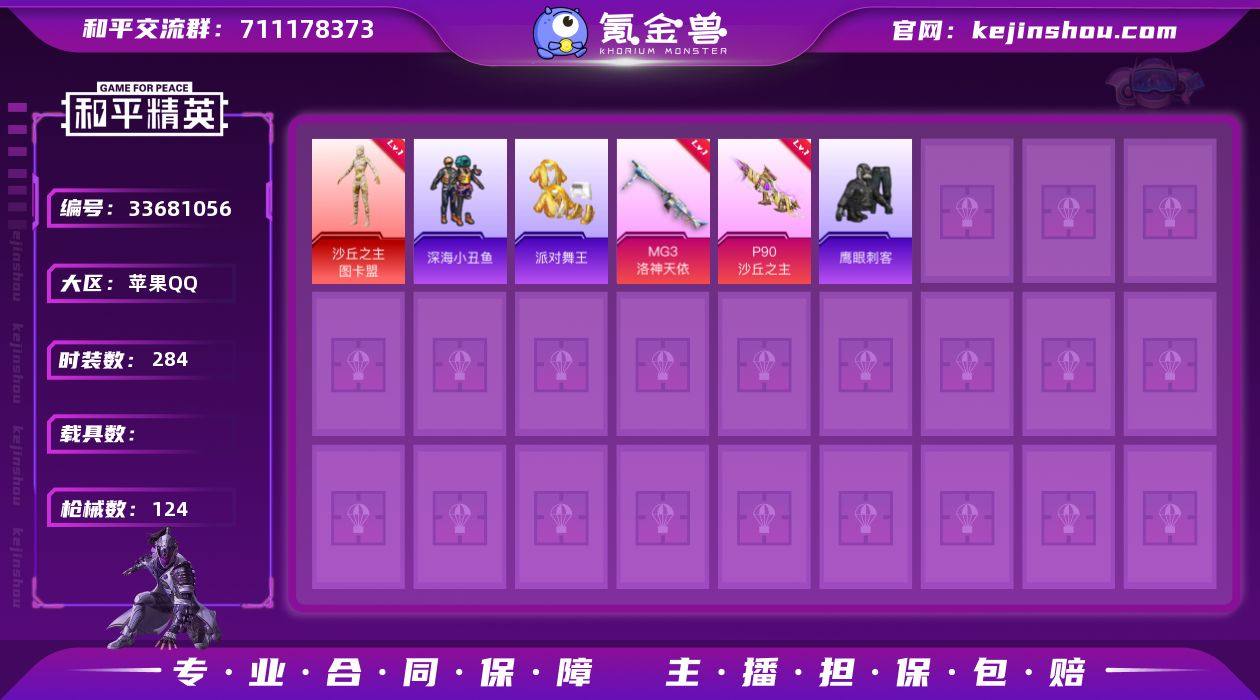 【稀有枪皮】Vector-最终圣卫者,ACE32-萌骑漫游,14-福马献瑞,破片手榴弹-贪吃小熊,DP-28-豹影疾电,蜜獾-异瞳寒姬,MG3洛神天依,P90沙丘之主