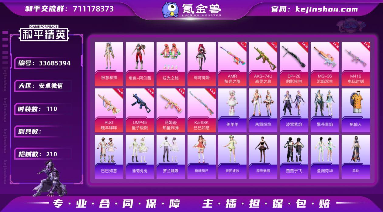 【LHPD314】【店主推荐捡漏号!可直接换绑】安卓 微信-4粉装-9特效枪-0载具-5粉色飞行器-58758热力值-8王牌印记-110套装-210枪皮【热门品类】:套装-龟仙人【粉色套装】:角色-阿尔茜,粉装-炫光之旅,角色-绯穹魔姬,粉装-极意拳锋【粉色枪皮等级】:M416-电玩时刻(五级),AUG-暖羊咩咩(五级),UMP45-量子极限(五级),汤姆逊-热量炸弹(五级),AKS-74U-森灵之息(五级),Kar98K-巳巳如意(五级),AMR-炫光之旅(七级),DP-28-豹影疾电(五级),MG-36-沧焰双生(五级)【粉色枪皮】:M416-电玩时刻,AUG-暖羊咩咩,UMP45-量子极限,汤姆逊-热量炸弹,AKS-74U-森灵之息,Kar98K-巳巳如意,AMR-炫光之旅,DP-28-豹影疾电,MG-36-沧焰双生【粉色飞行器】:太空嘟嘟飞行器,变形金刚飞行器,萌物绒绒飞行器,繁龙极客飞行器
