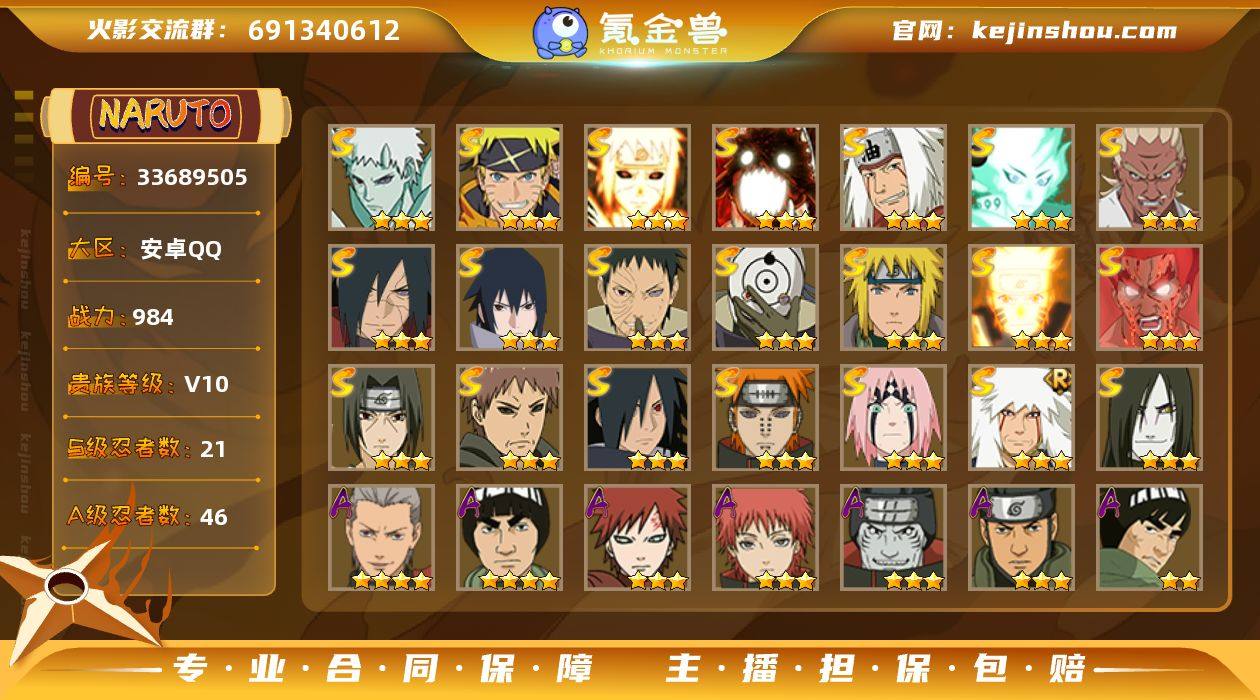 【HY919】21S级忍者数-46A级忍者数【S级忍者】:宇智波斑「秽土转生·解」(3星),春野樱「忍界大战」(3星),宇智波带土「忍界大战」(3星),艾「忍界大战」(3星),宇智波鼬「须佐能乎」(3星),宇智波斑「木叶创立」(3星),罗砂「四代目风影」(3星),自来也「舞之豪杰」(3星),大蛇丸(3星),自来也「传说中的三忍」(3星),波风水门(3星),漩涡鸣人「九喇嘛连结」(3星),迈特凯「死门」(3星),佩恩「天道」(3星),宇智波佐助「永恒万花筒」(3星),宇智波斑 「白面具」(3星宇智波斑「白面具」),大筒木舍人「最终章」(3星),漩涡鸣人「暴怒·第六尾」(3星),波风水门「九喇嘛连结」(3星),漩涡鸣人·宇智波佐助(3星),宇智波带土「十尾人柱力」(3星)【A级忍者】:艾「青年」(2星),长门「青年」(2星),波风水门「青年」(2星),波风水门「新春限定」(2星),达鲁伊「博人传」(2星),迪达拉(2星),迪达拉「秽土转生」(2星),奇拉比(2星),奇拉比「忍界大战」(2星),飞段(4星),飞段「死司凭血」(2星),干柿鬼鲛(3星),漩涡博人「桃式显现」(2星),漩涡鸣人「仙人模式」(2星),漩涡鸣人「九尾查克拉」(2星),机械鸣人「初始形态」(2星),迈特凯(4星),旗木卡卡西「神威对决」(2星),桃地...
