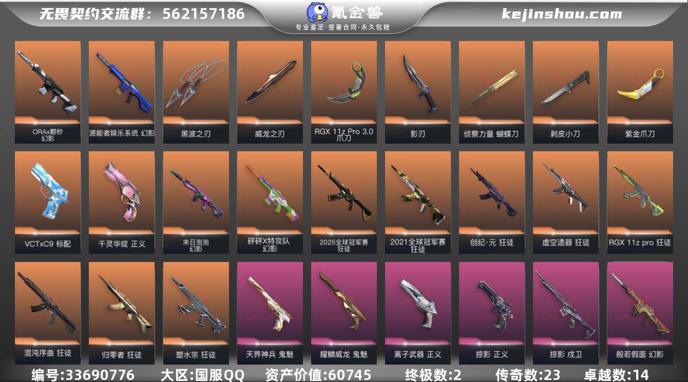 段位: 黄金 亮点皮肤: 狂徒-2021全球冠军赛 近战武器皮肤: 蝴蝶刀-侦察力量,剥皮小刀-异形猎人,紫金爪刀-紫阙金琅//2.0,黑波之刃-塑水宗,威龙之刃-耀鳞威龙,爪刀-RGX 11z Pro 3.0,影刃-掠影 步枪皮肤: 幻影-砰砰X特攻队,狂徒-紫阙金琅,狂徒-盖亚的复仇,狂徒-归零者,狂徒-盖世英雄,狂徒-塑水宗,狂徒-耀鳞威龙,狂徒-堕天遗武,幻影-般若假面,幻影-源能者娱乐系统,狂徒-混沌序曲,狂徒-掠影,戍卫-掠影,狂徒-创·纪元,狂徒-虚空遗器,狂徒-RGX 11z pro,幻影-末日泡泡,2025全球冠军赛 狂徒,幻影-ORAx颗秒 佩枪皮肤: 鬼魅-天界神兵,鬼魅-耀鳞威龙,标配-VCTxC9,正义-千灵华绽,正义-离子武器,正义-掠影 狙击枪皮肤: 冥驹-起源,冥驹-掠影 亮点: 【充值总皮肤】: ORA x 颗秒 幻影, 黑波之刃, 2025全球冠军赛 狂徒, 末日泡泡 幻影, RGX 11z Pro 狂徒, 虚空遗器 狂徒, 创·纪元 狂徒, 影刃, 掠影 戍卫, 掠影 狂徒, 掠影 冥驹, 掠影 正义, 混沌序曲 狂徒, RGX 11z Pro//3.0 爪刀, 离子武器 正义, 源能者娱乐系统 幻影, 千灵华绽 正义, 般若假面 幻影, 紫金爪刀, VCT x C9 标配, 堕天遗武 狂徒, 盖世英雄 狂徒, 2021全球冠军赛 狂徒, 威龙之刃, 耀鳞威龙 狂徒, 耀鳞威龙 鬼魅, 塑水宗 狂徒, 剥皮...