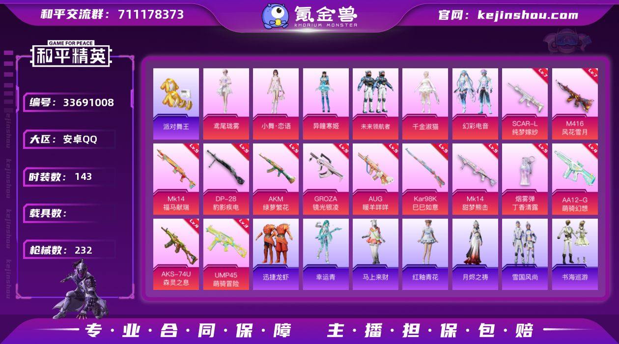 【金鞋 小舞 哥特 满地铁天赋】YXc29960-【无二次协助处理】【因赛季更新游戏段付以上号为准!】 安卓Q-3稀有6粉装13特效枪3热门143套装232枪皮 14印记 历史绝世王牌18星 【3稀有】 浪漫天命 派对舞王 派对舞王(金靴子) 【6粉装】 小舞恋语 千金淑猫 鸢尾珑雾 异瞳寒姬 未来领航者 幻彩电音 【13特效枪】 SCAR-L-纯梦嫁纱 (7级) AKS-74U-森灵之息 (4级) AKM-绿萝繁花 (5级) Kar98K-巳巳如意 (5级) DP-28-豹影疾电 (5级) AUG-暖羊咩咩 (5级) Mk14-甜梦熊击 (5级) GROZA-镜光银凌 (5级) M416-风花雪月 (7级) Mk14-福马献瑞 (5级) AA12-G-萌骑幻想 (4级) UMP45-萌骑冒险 (3级) 烟雾弹-丁香清露 (5级) 【3热门】 龟仙人 暗影哥特 破蛋小黄鸡 【1飞行器】 春暖花开飞行器 【1头盔】 幻影战神头盔 【1背包】 幻影战神背包